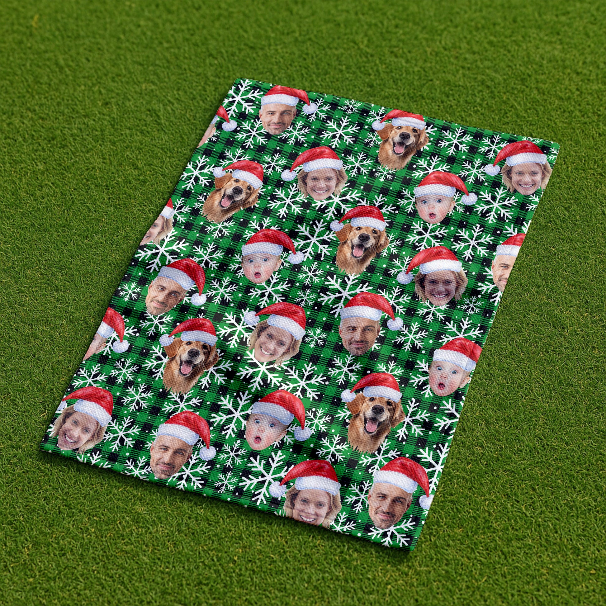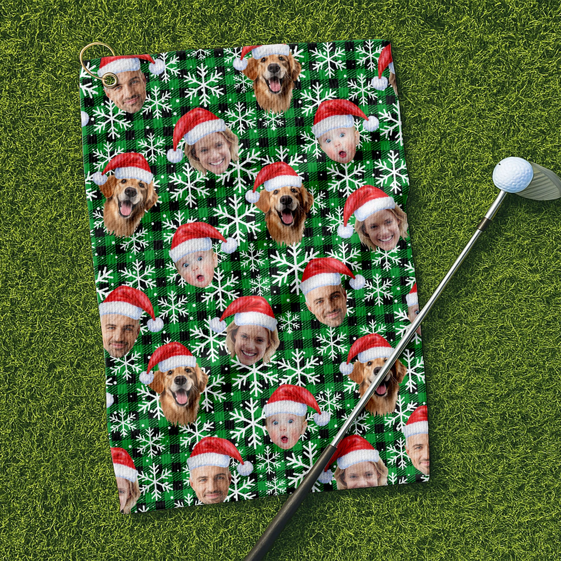 Custom Face Green And Black Checkered Cute Golf Towels, Christmas Golf Gift, Custom Golf Accessories