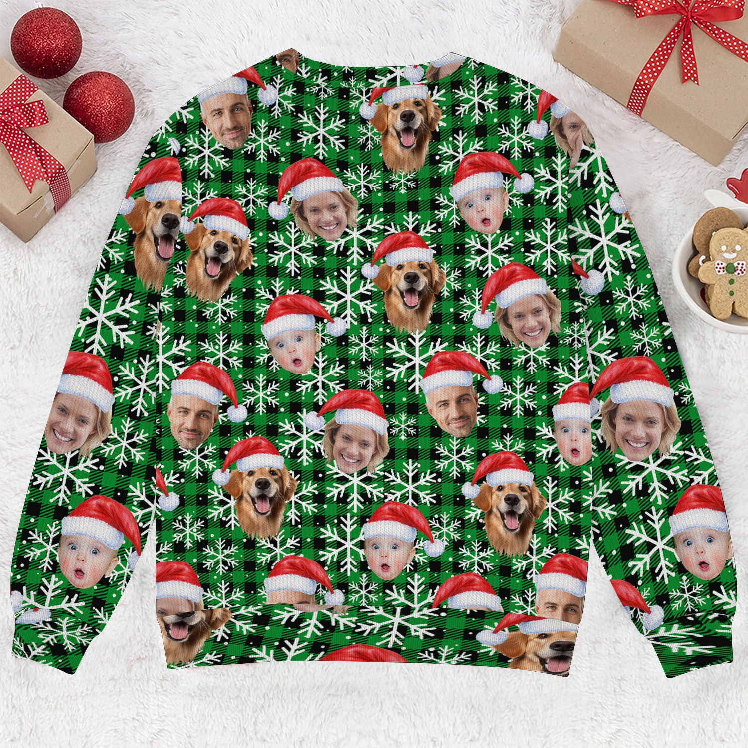 Custom Face Green And Black Checkered Golf Ugly Sweater, Christmas Golf Shirt, Golf Sweater, Christmas Golf Gift