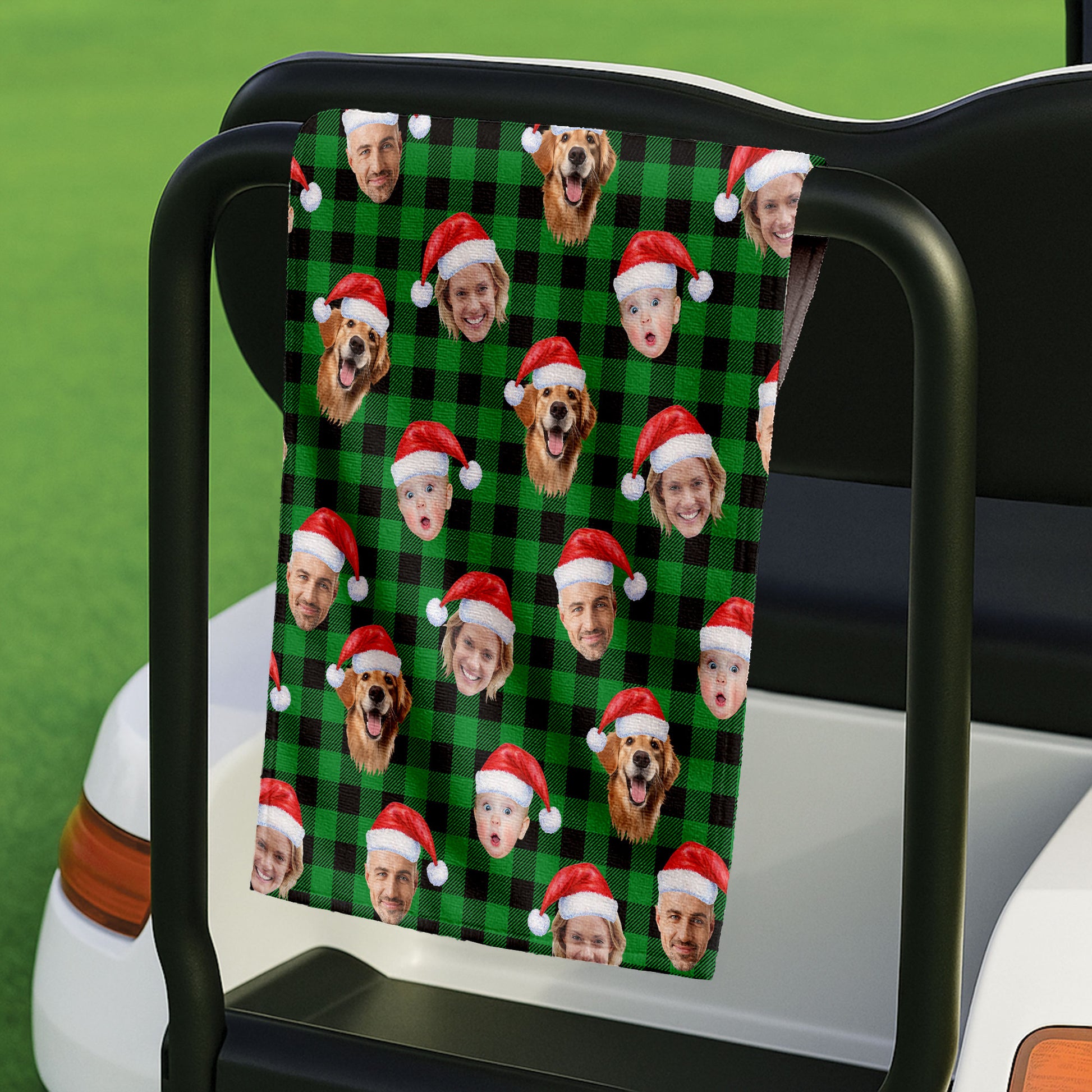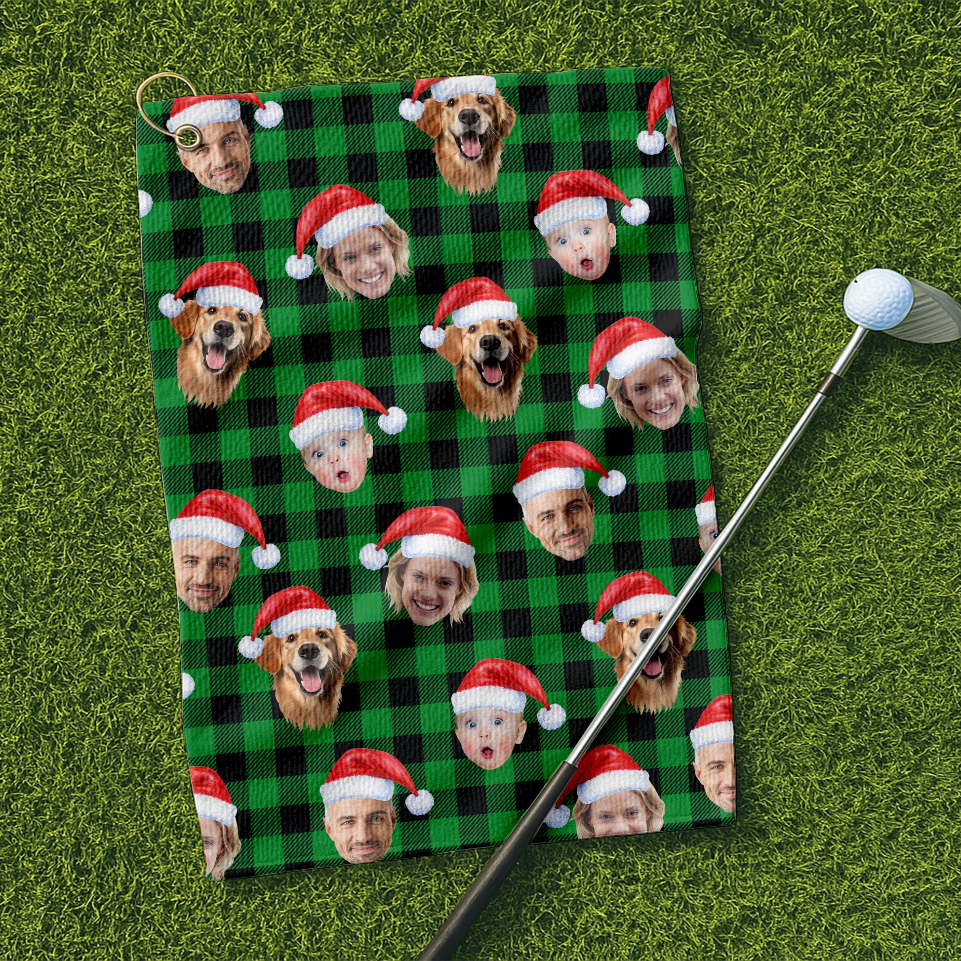 Custom Face Green Buffalo Plaid Golf Towels, Christmas Golf Gift, Custom Golf Accessories