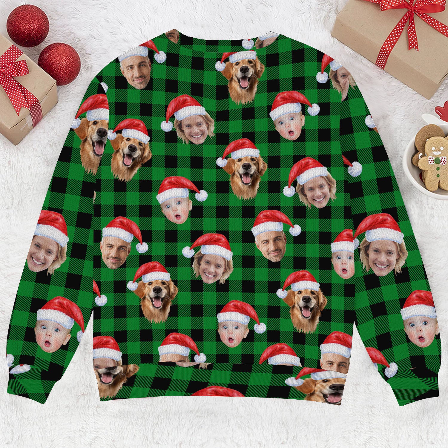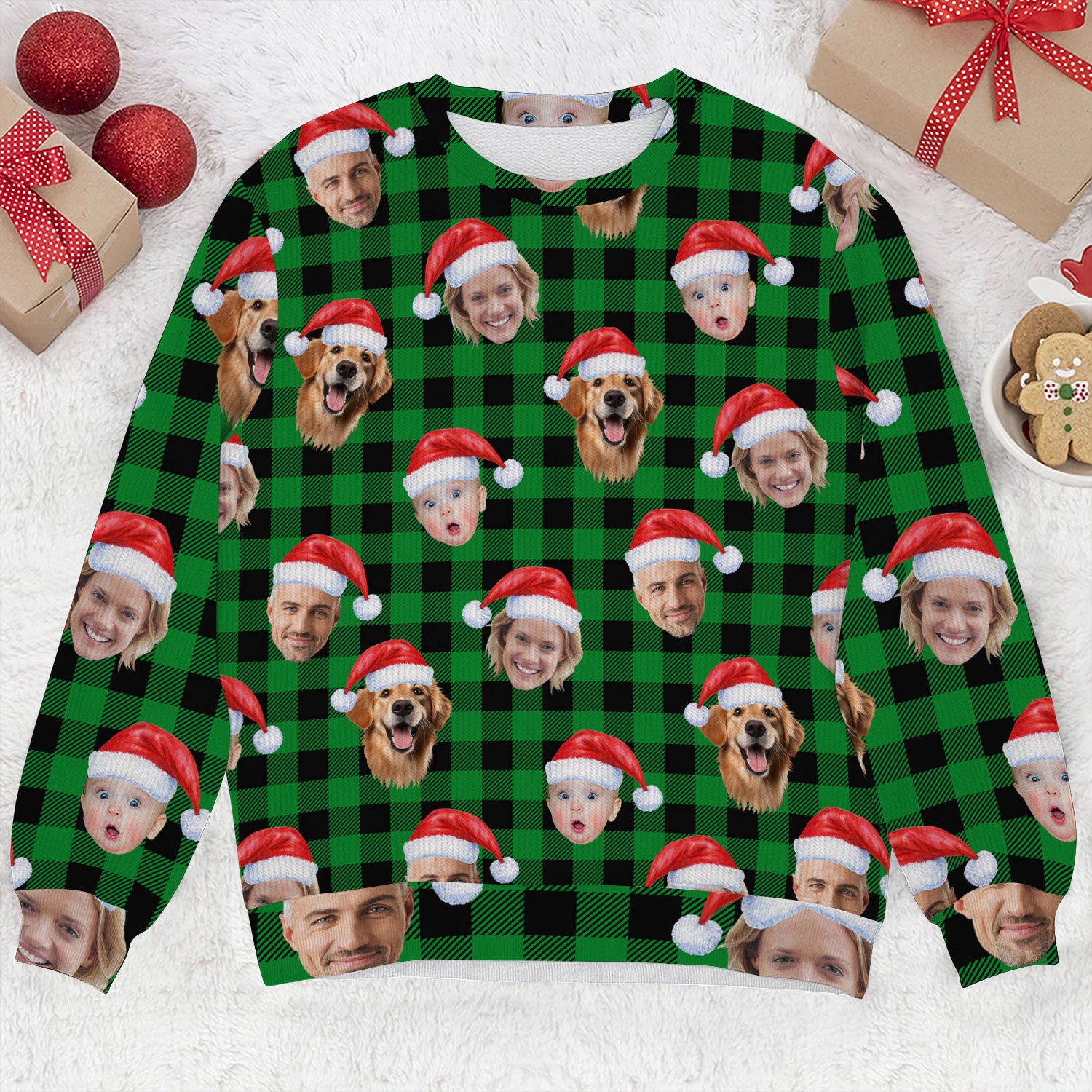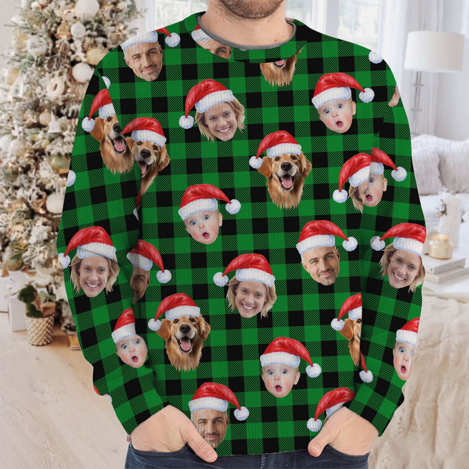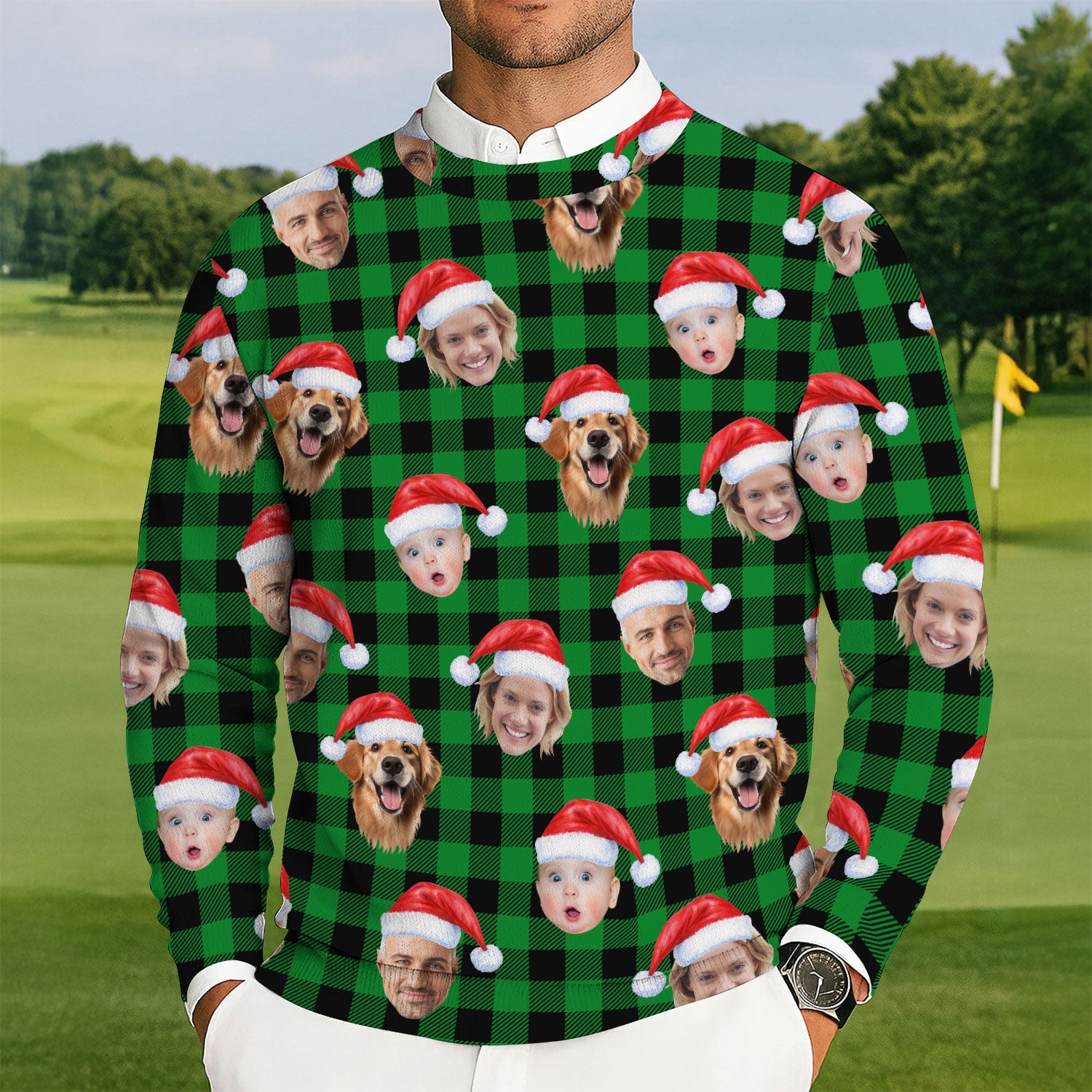 Custom Face Green Buffalo Plaid Golf Ugly Sweater, Christmas Golf Shirt, Golf Sweater, Christmas Golf Gift
