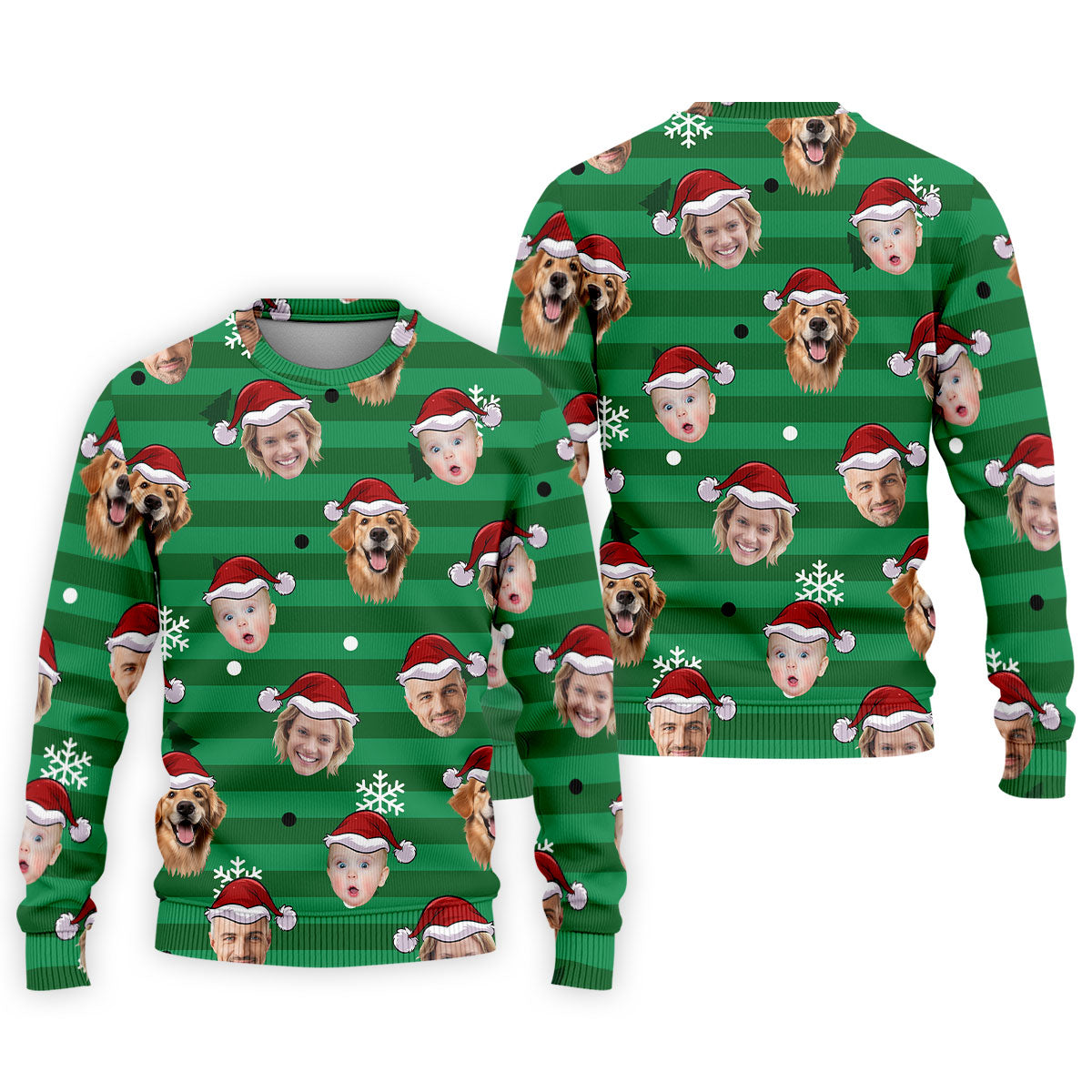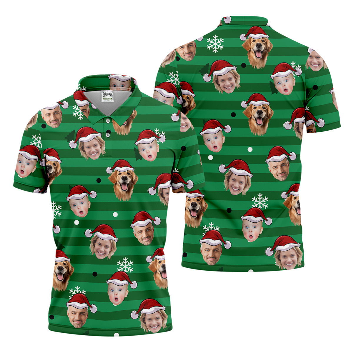Custom Face Green Stripe Christmas Golf Shirt, Golf Tops For Men, Polo Shirts For Men, Christmas Golf Gift