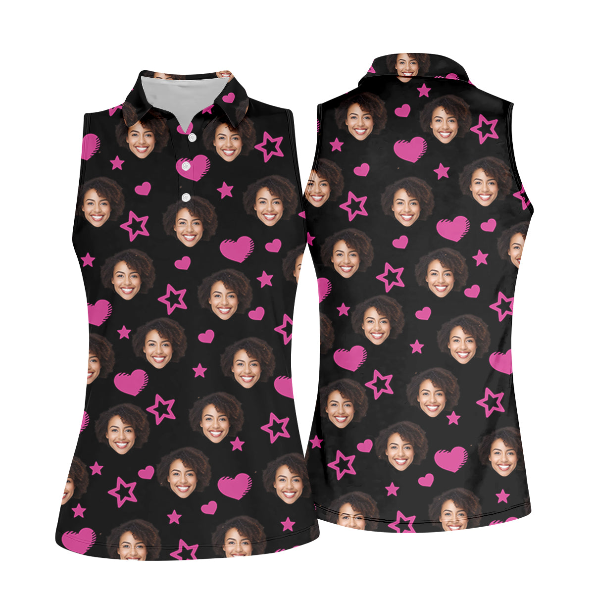 Custom Face Heart And Star Black Golf Shirt, Valentines Golf Gift, Golf Shirt For Women, Ladies Golf Polos