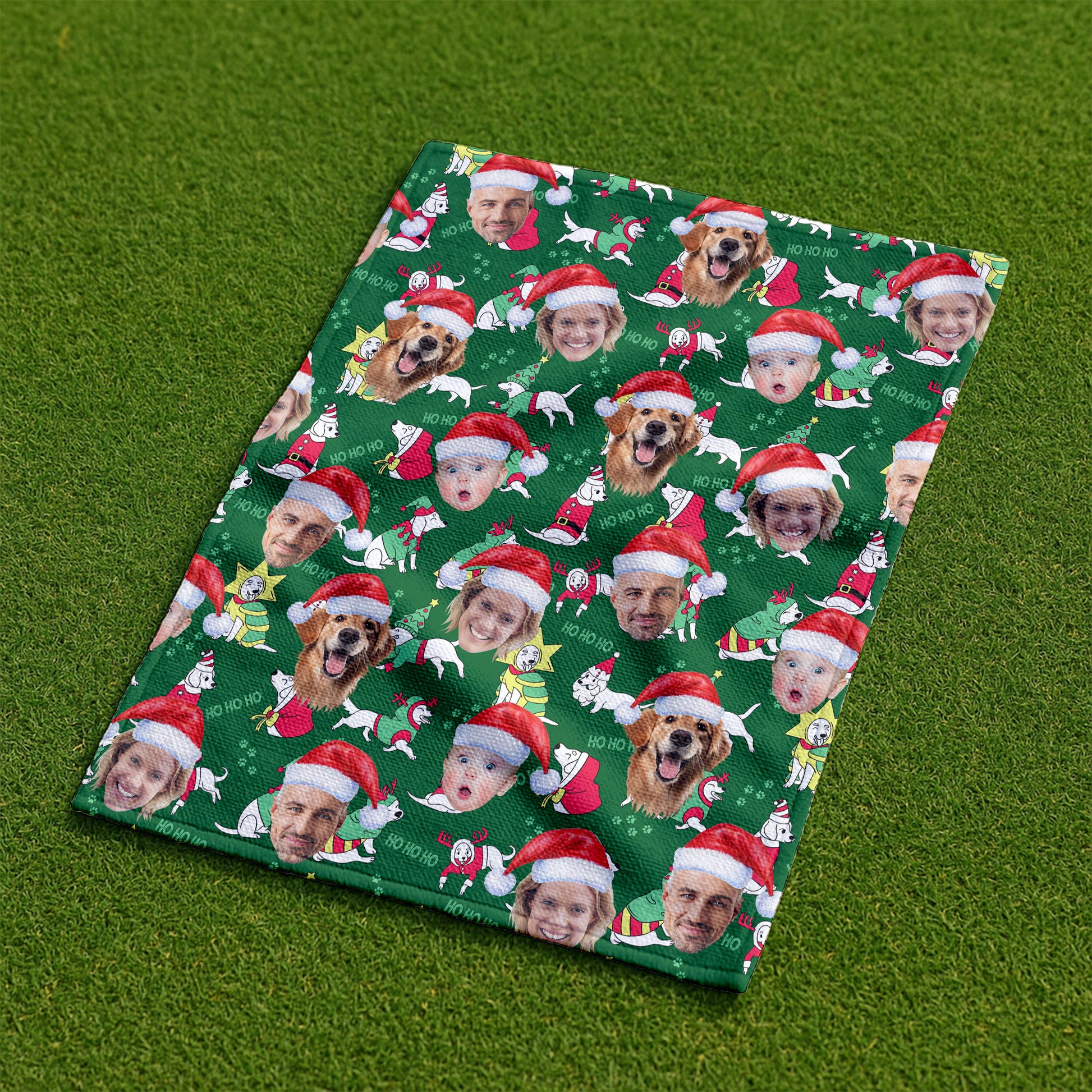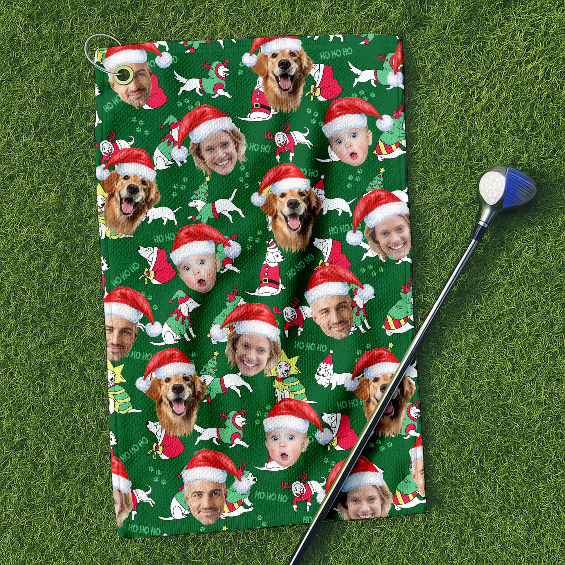 Custom Face Ho Ho Ho Cute White Dog Golf Towels, Christmas Golf Gift, Custom Golf Accessories