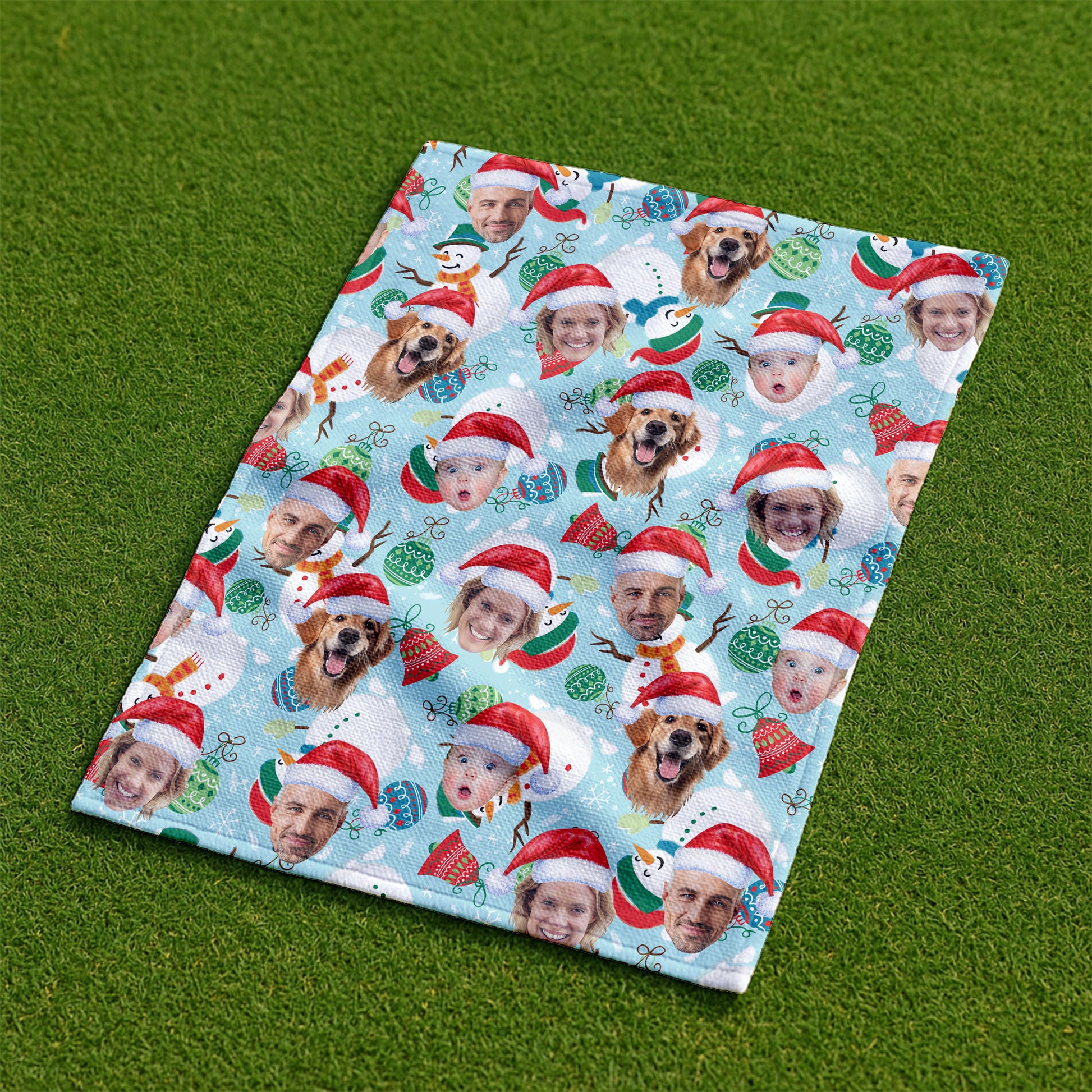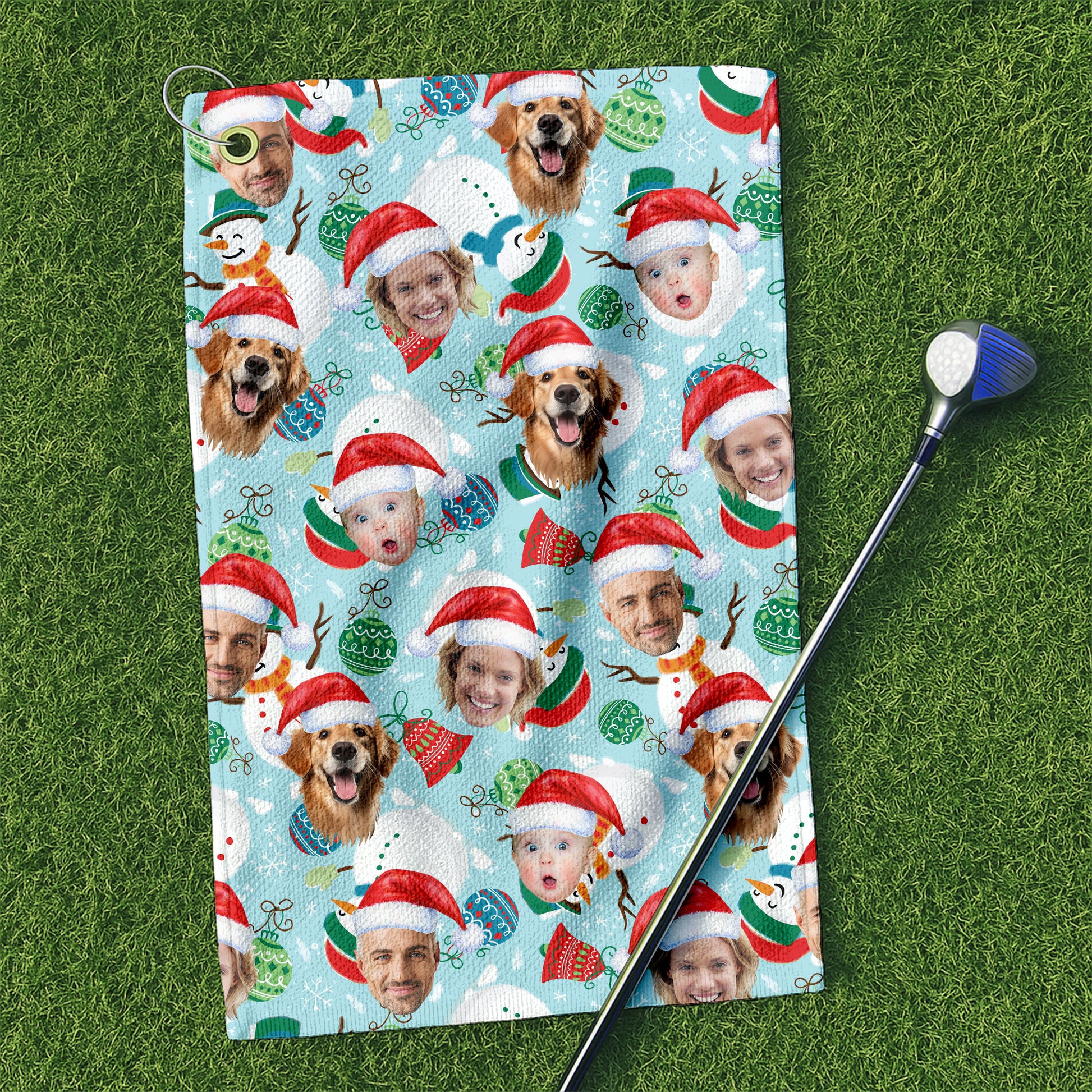 Custom Face Joyful Christmas Icy Blue Golf Towels, Christmas Golf Gift, Custom Golf Accessories