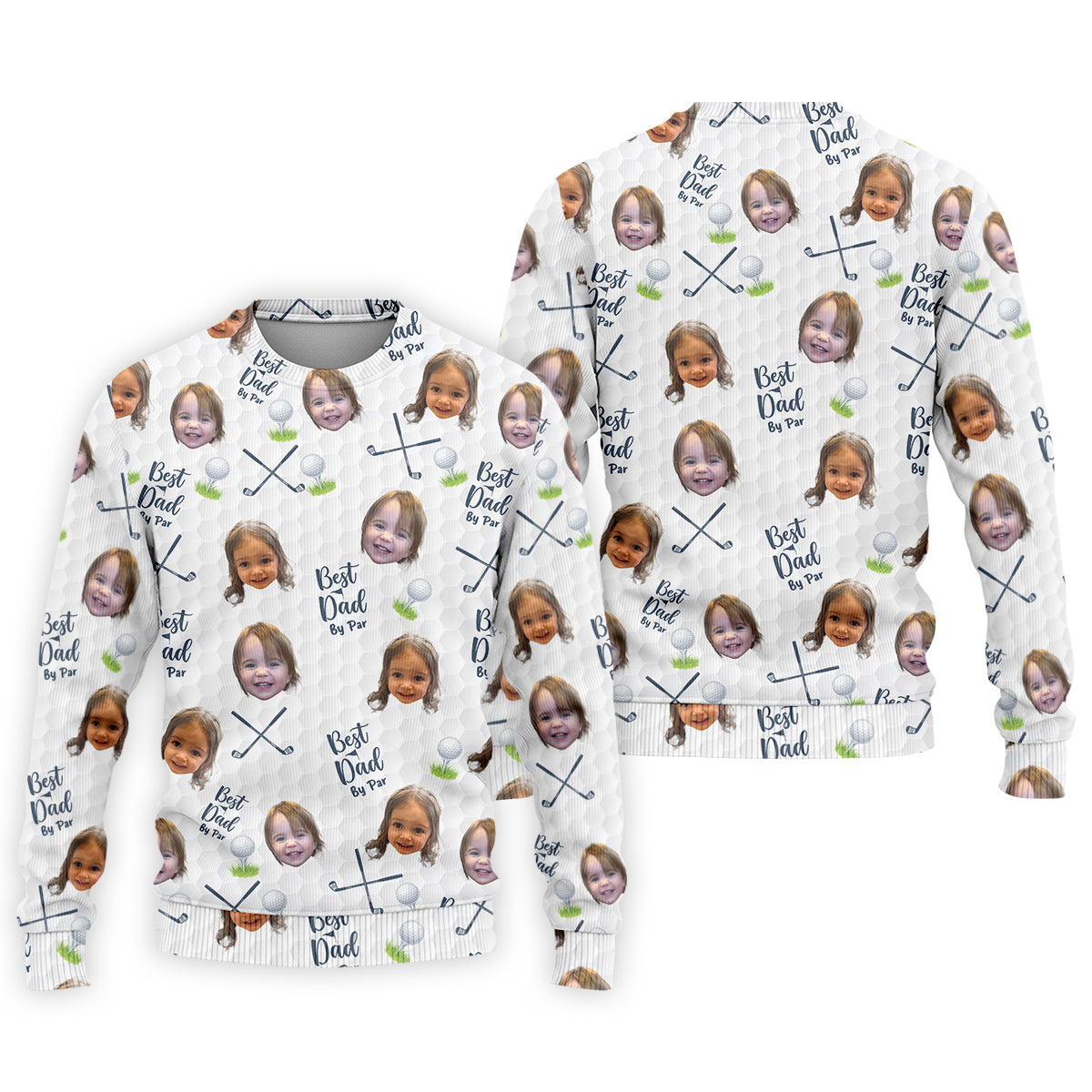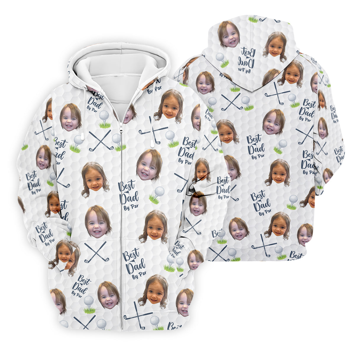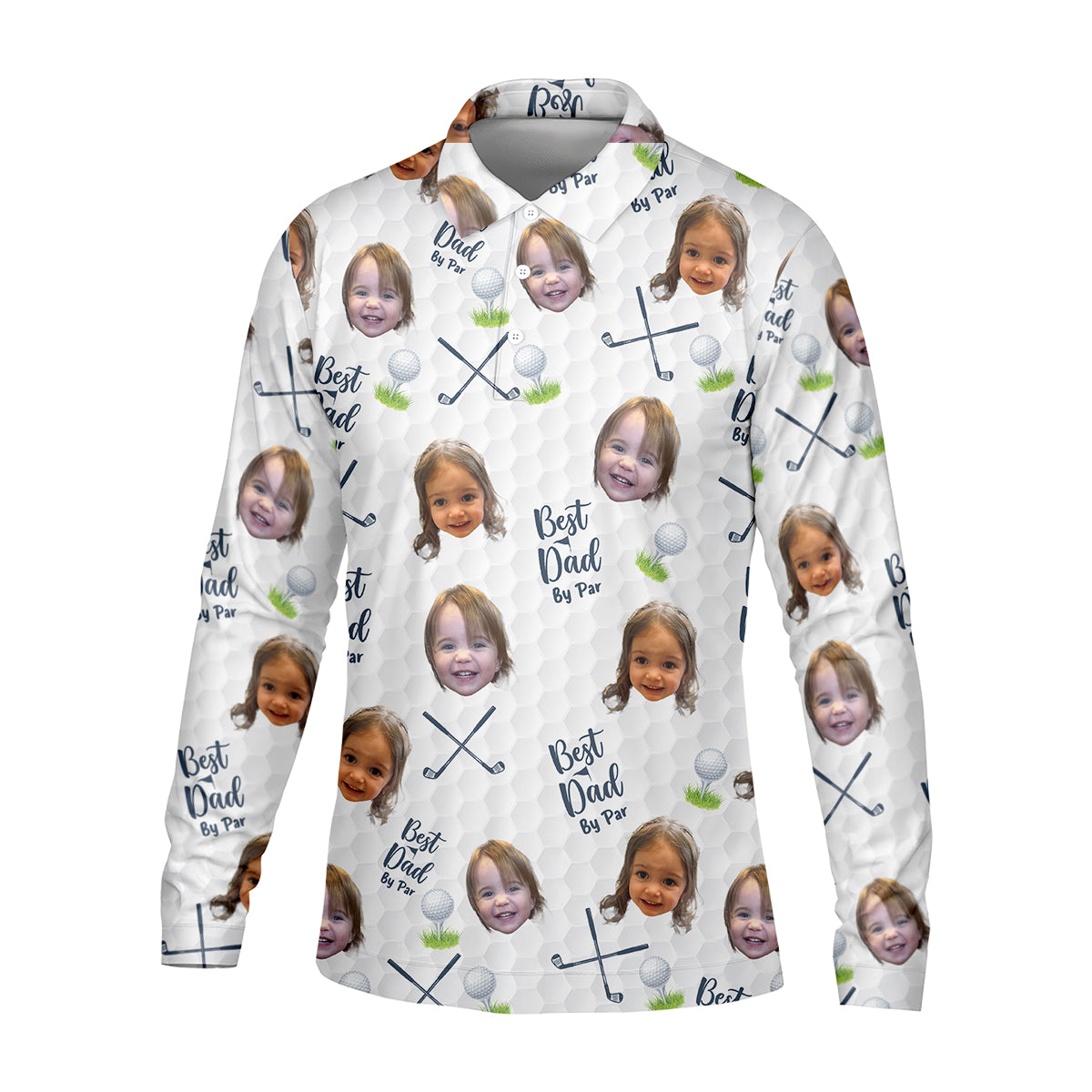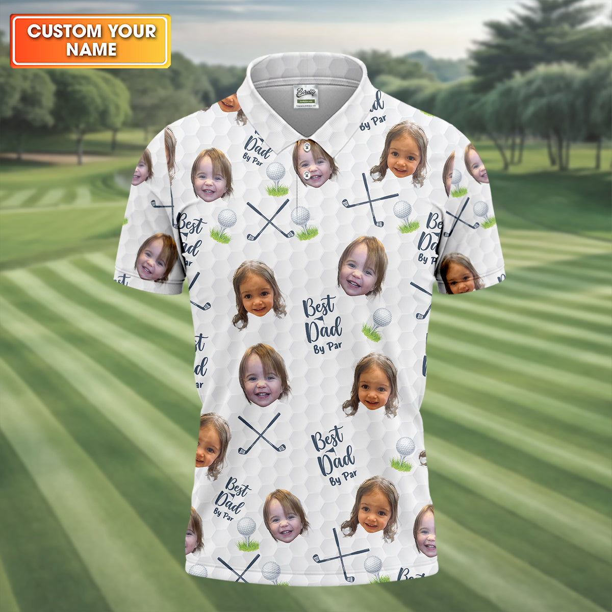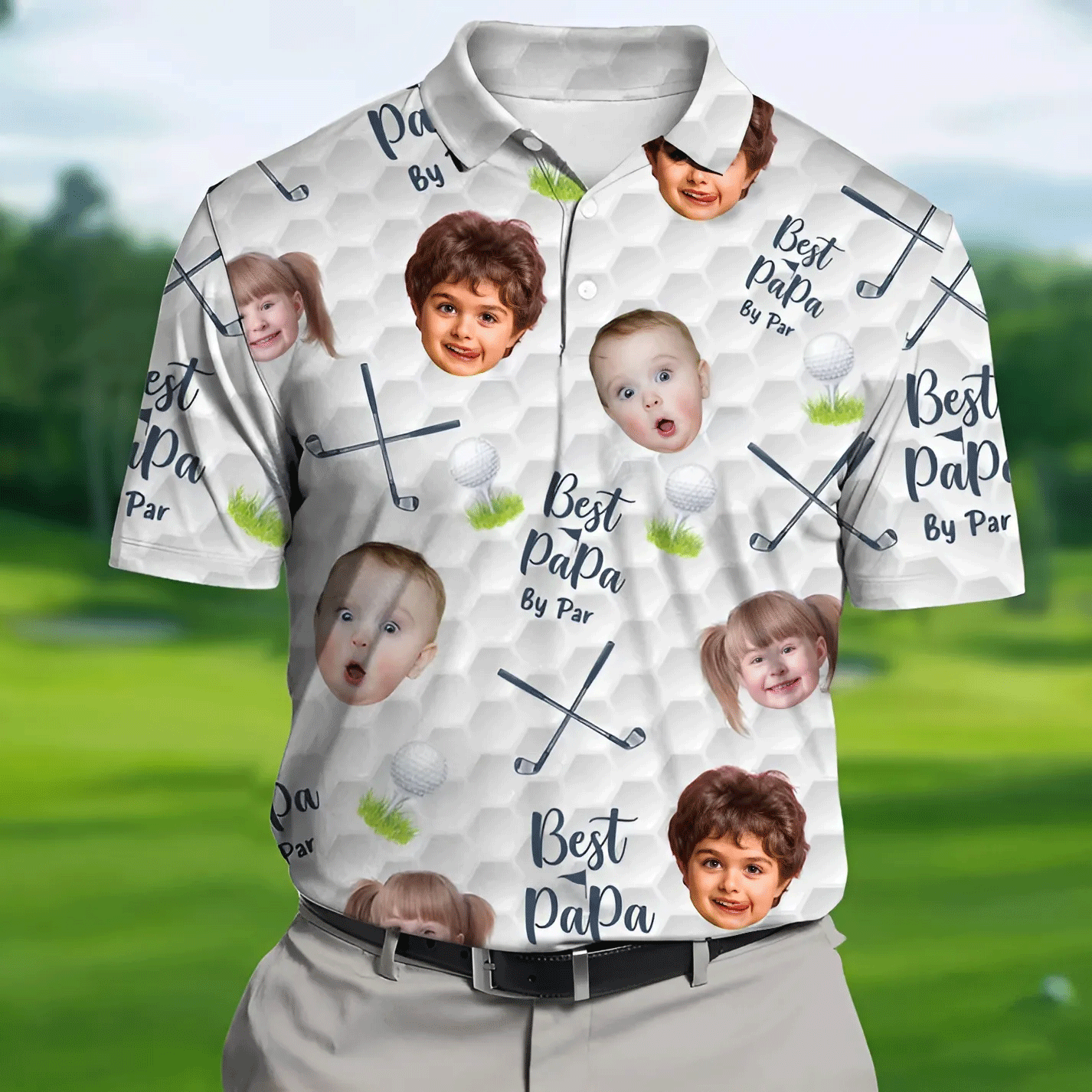 Custom Face Kids Photo, Best Papa By Par Funny Polo Golf Shirt, Christmas Golf Gift