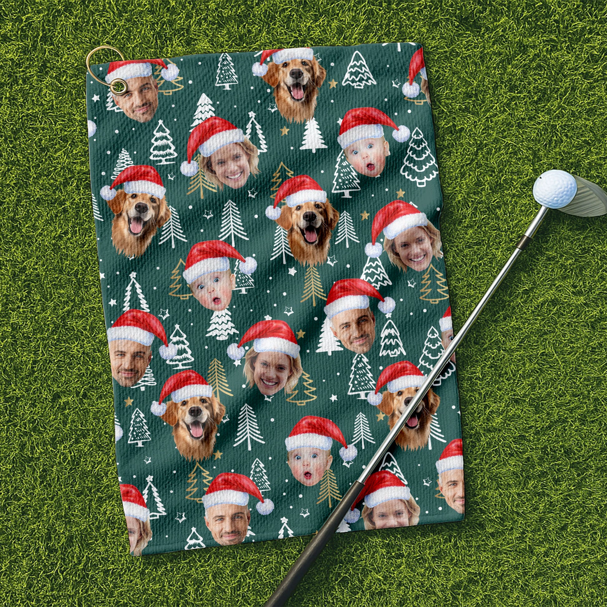 Custom Face Pine Tree Pattern Dark Green Golf Towels, Christmas Golf Gift, Custom Golf Accessories