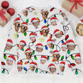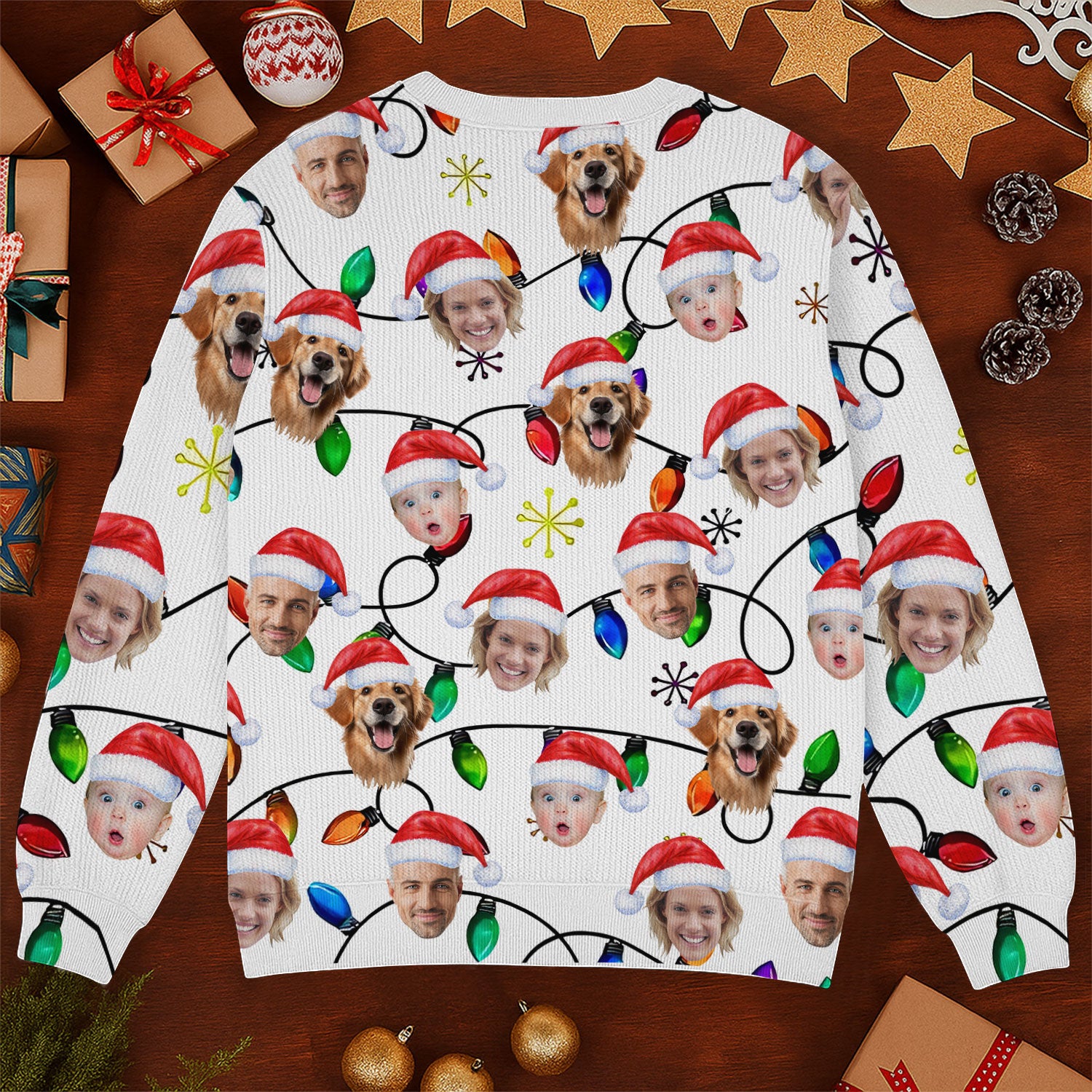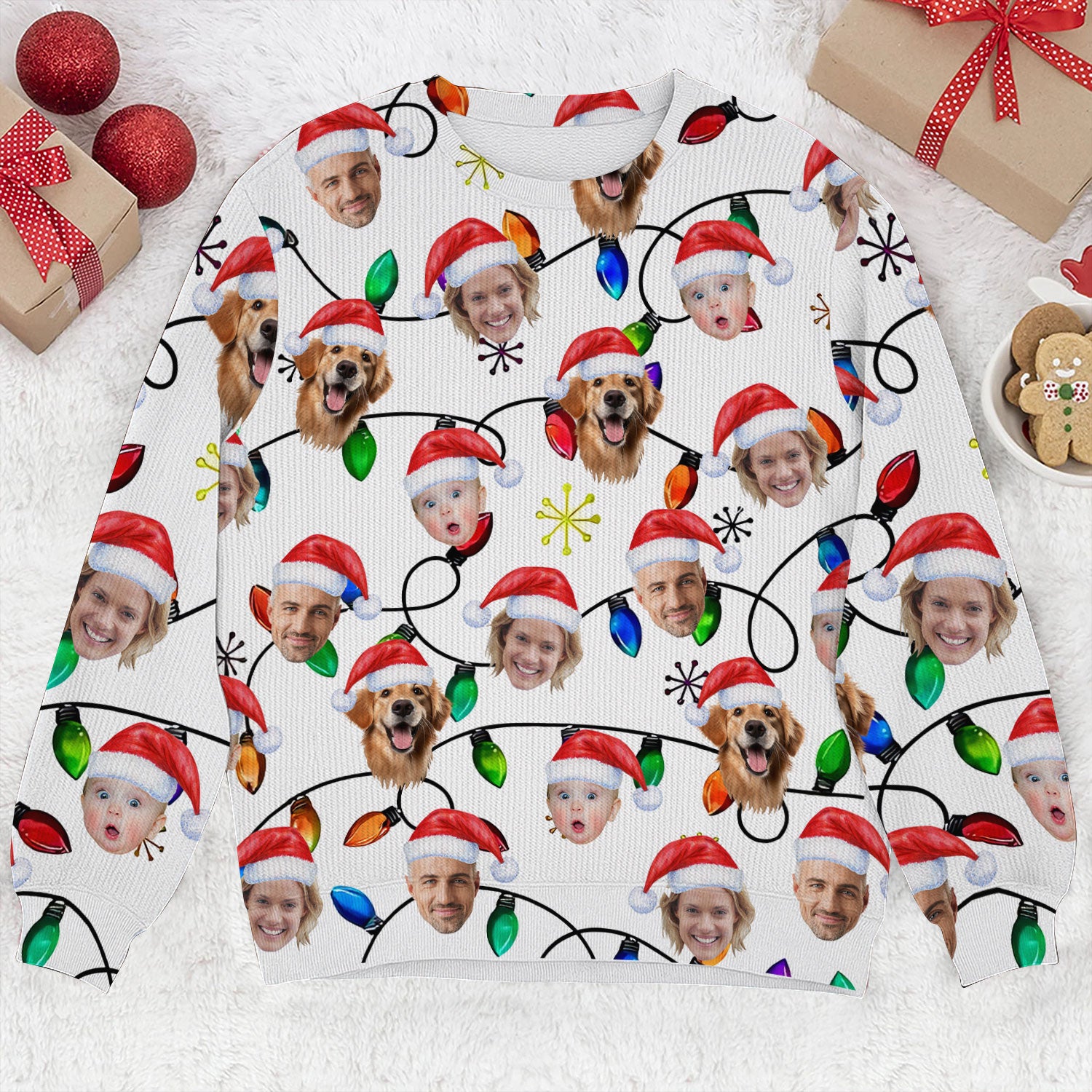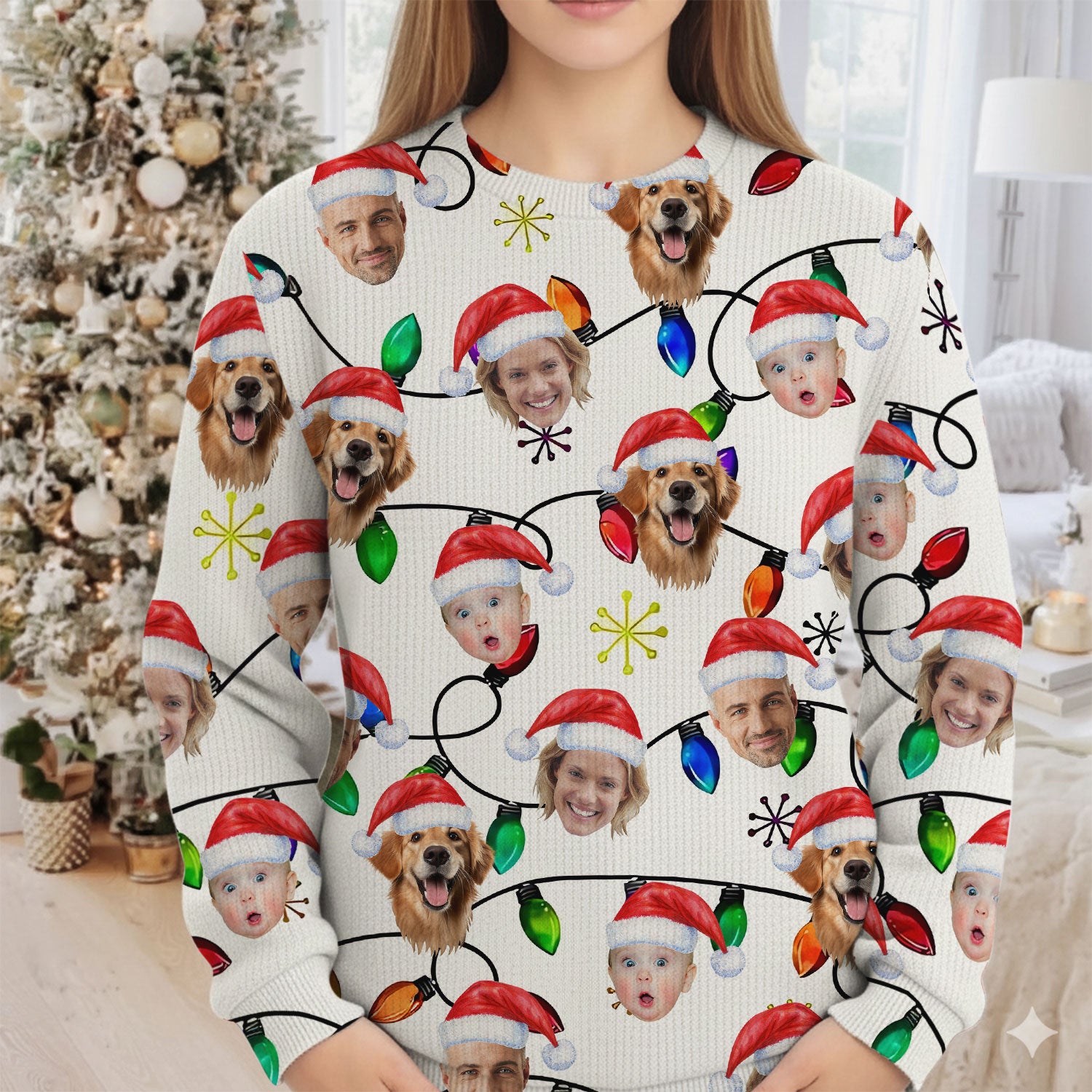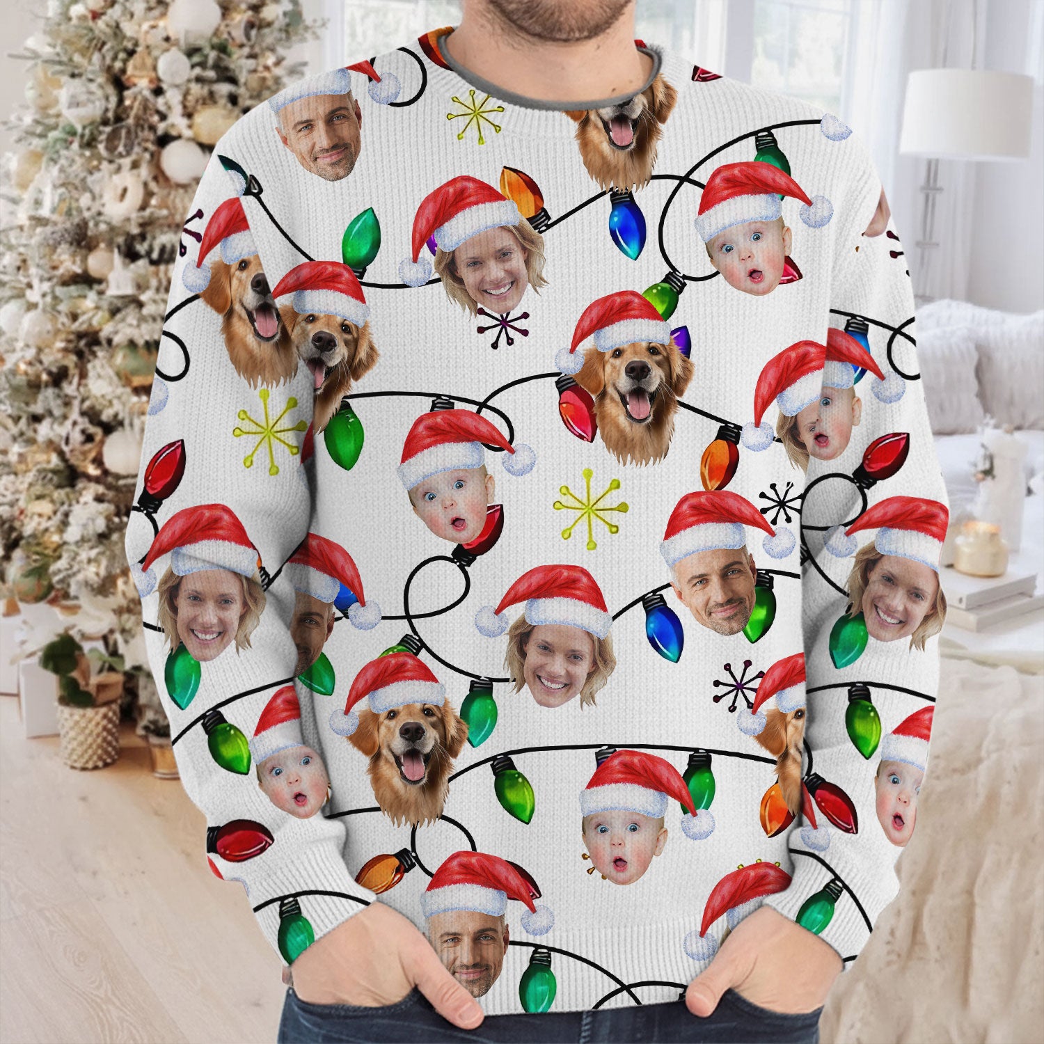 Custom Family Portrait Christmas Lights Pattern Vintage Print Ugly Sweater, Christmas Golf Shirt, Golf Sweater