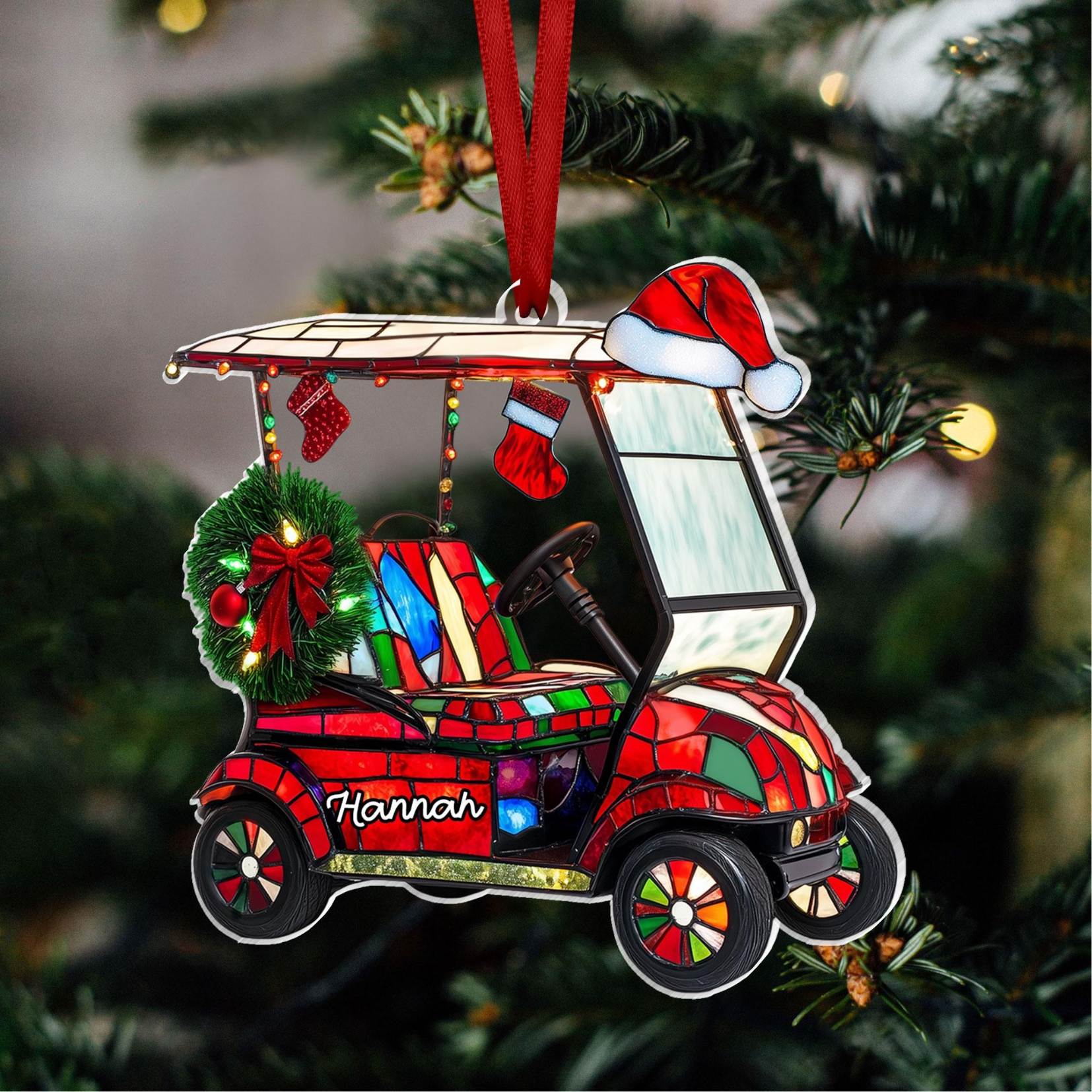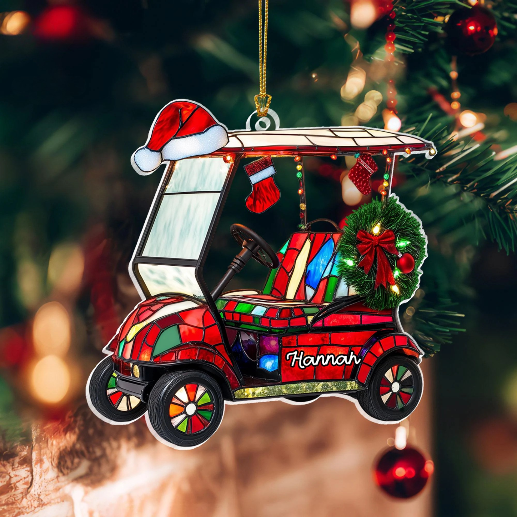 Custom Golf Cart Acrylic Ornament, Custom Name Golf Ornament, Christmas Golf Gift, Custom Golf Gift
