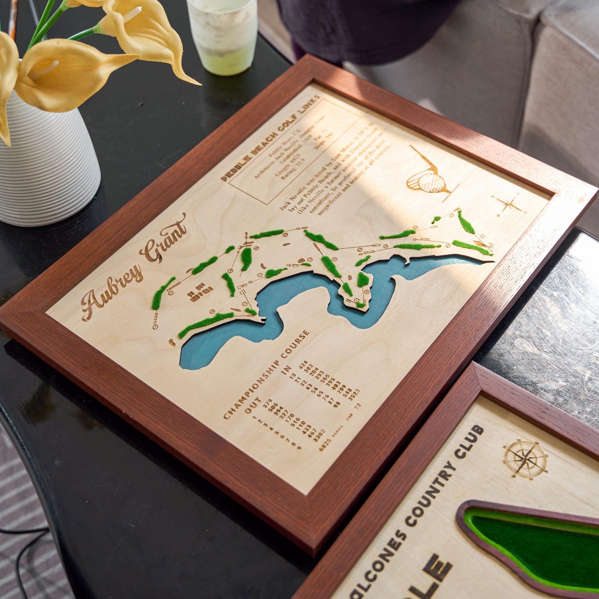 Introducing the Custom Golf Course Map — a handcrafted tribute to your favorite U.S. golf course, built from real quality wood and colored to last longer than your short game consistency.