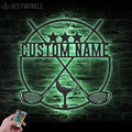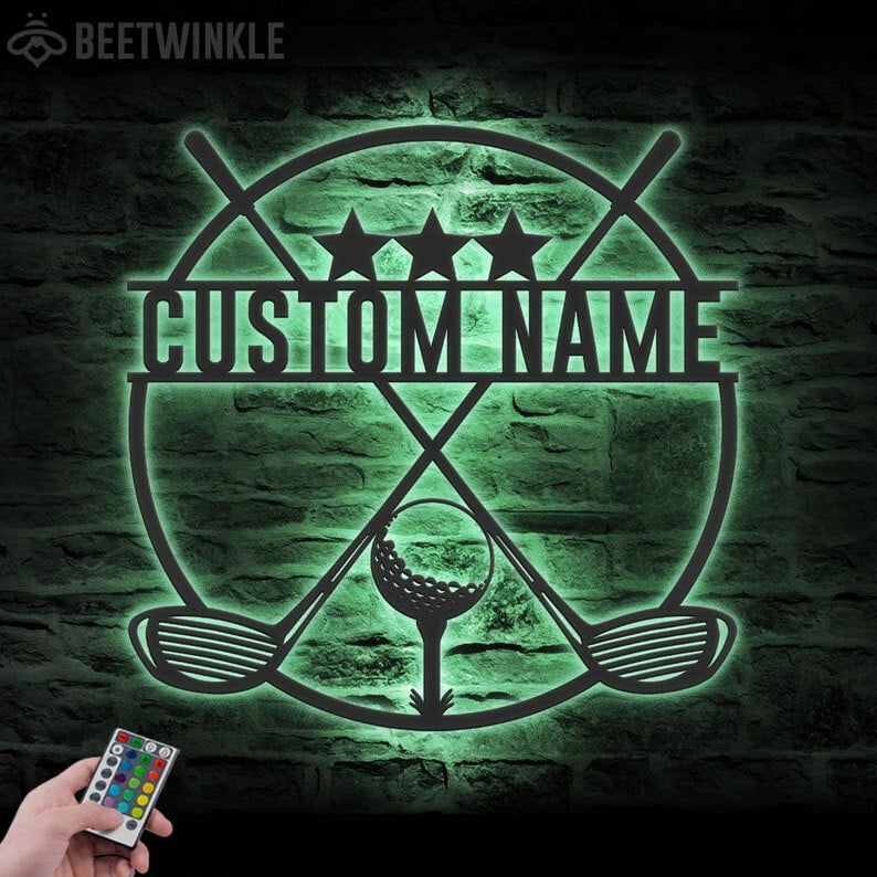 Make golf a part of your home décor with this unique Custom Golfing Cut Metal Sign. It's an ideal way to show off your golf prowess and make all golfers envious. The LED Wall Art LED Light provides just enough of a touch to add charm to any room. Personalize it with your Golfer Name Sign and really spruce up the golf course décor in your home or man cave. This Home Decor 19th Hole Golf Club Decoration is perfect for gifts too! Whether celebrating a birthday, Xmas, Housewarming, or just any special occasion, this golf club metal sign will surely stand out among other presents!