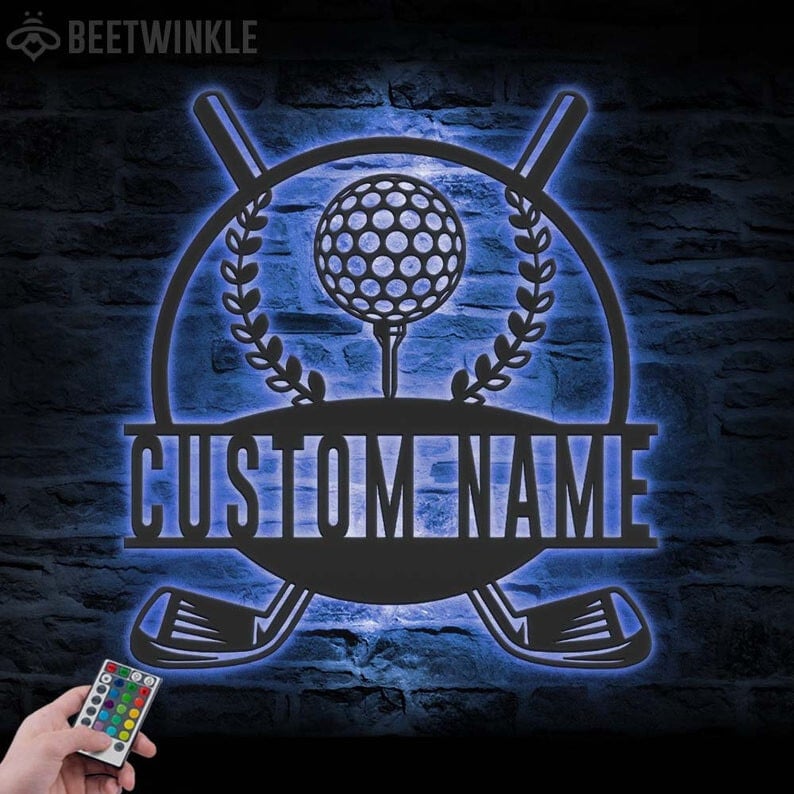 Make golf a part of your home décor with this unique Custom Golfing Cut Metal Sign. It's an ideal way to show off your golf prowess and make all golfers envious. The LED Wall Art LED Light provides just enough of a touch to add charm to any room. Personalize it with your Golfer Name Sign and really spruce up the golf course décor in your home or man cave. This Home Decor 19th Hole Golf Club Decoration is perfect for gifts too! Whether celebrating a birthday, Xmas, Housewarming, or just any special occasion, this golf club metal sign will surely stand out among other presents!