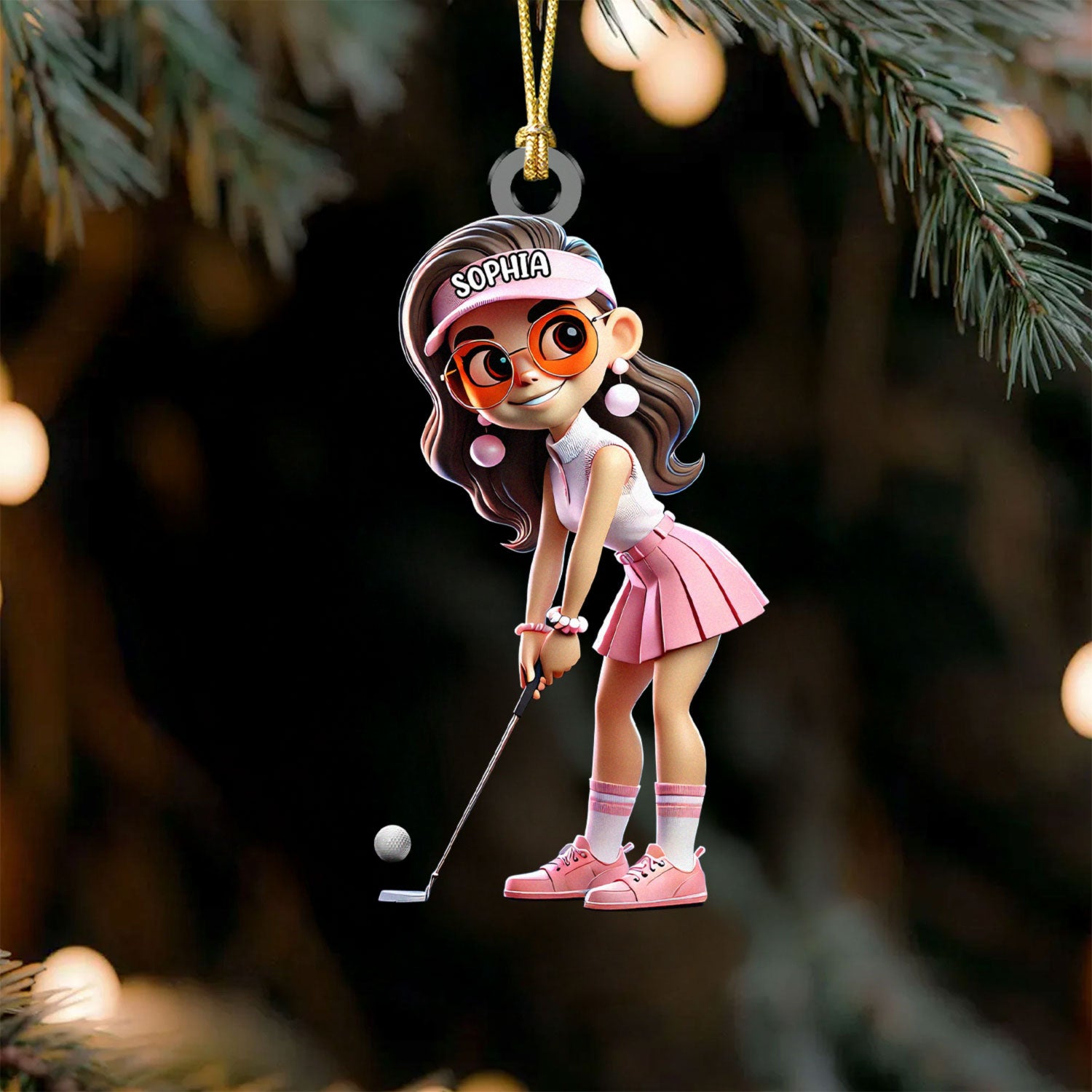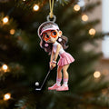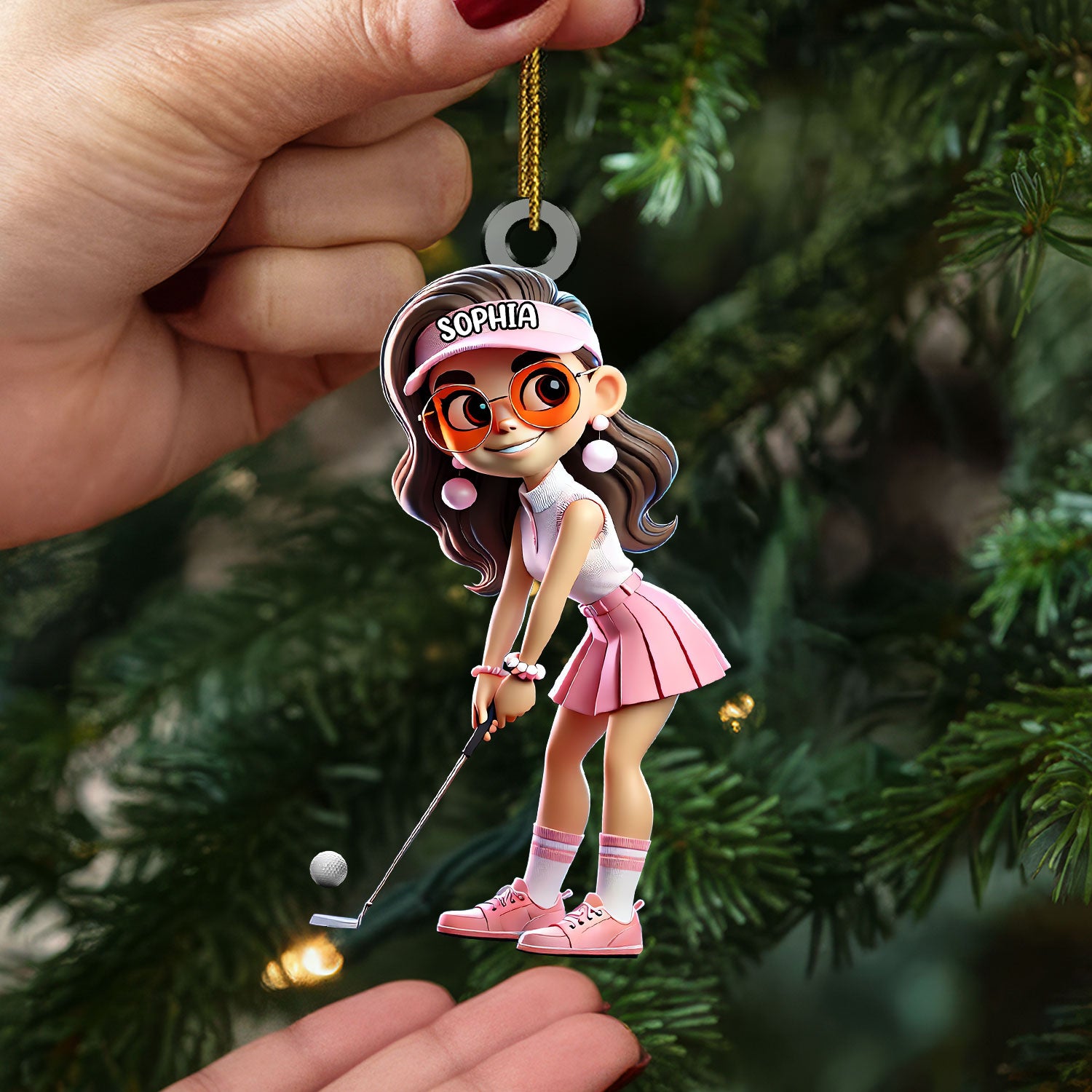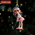 Custom Name Female Golfer Acrylic Ornament, Golf Xmas Ornaments, Golf Christmas Gifts, Cool Golf Gift
