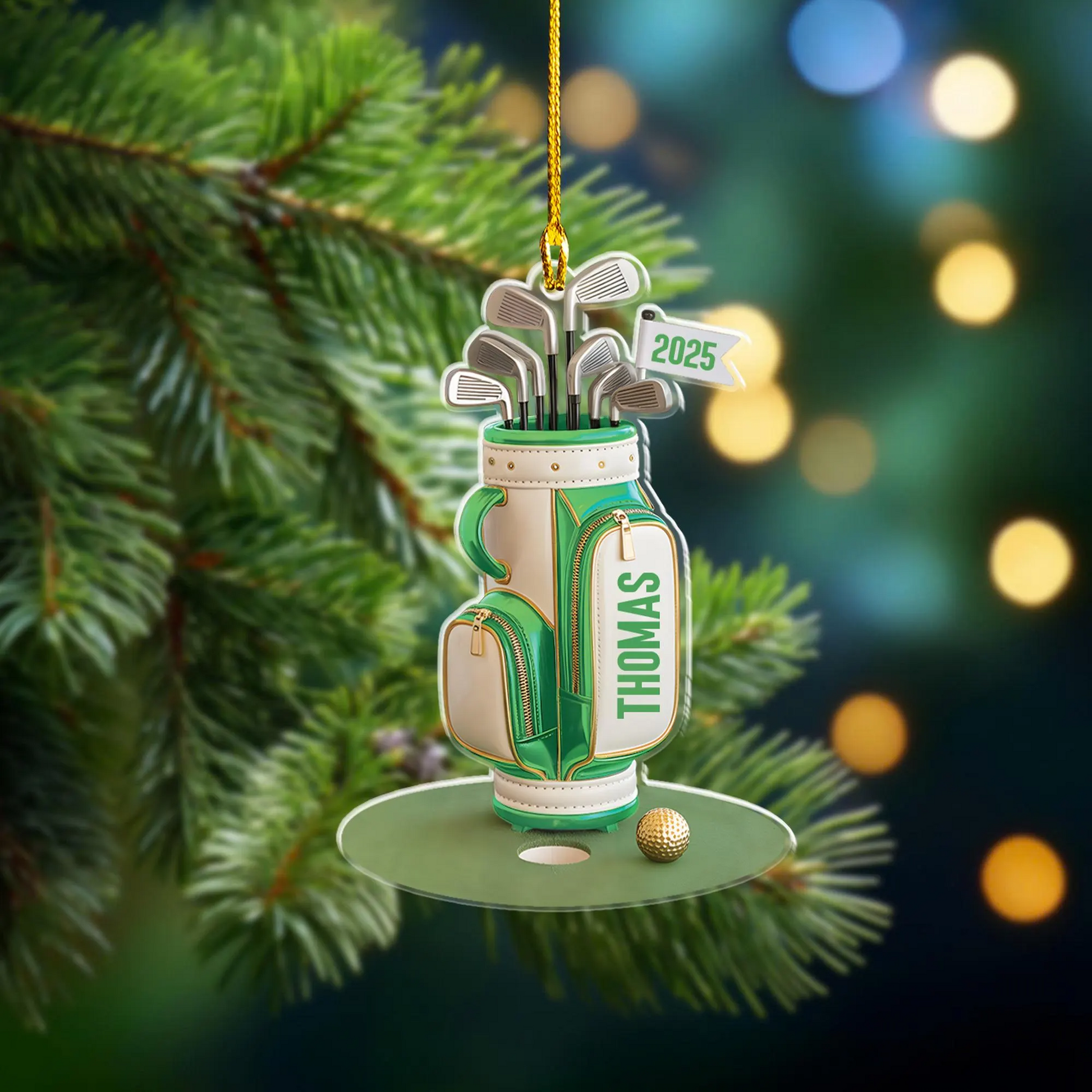Custom Name Golf Backpack Christmas Acrylic Ornament, Golf Ornaments For Christmas Tree, Golf Lover Gift