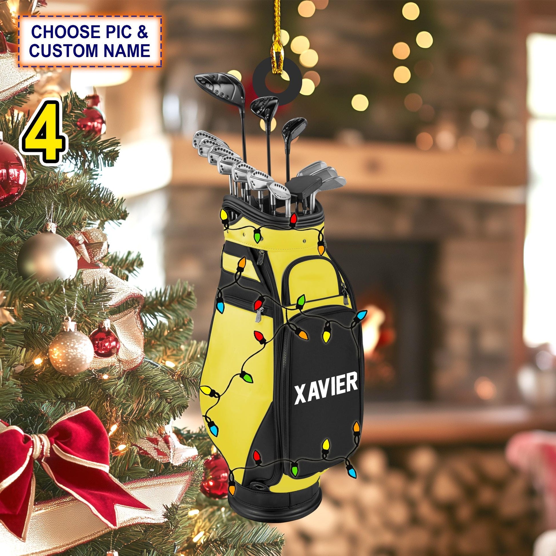 Custom Name Golf Backpacks Christmas Ornament, Gift For Golfer, Acrylic Ornament, Christmas Gift Ideas