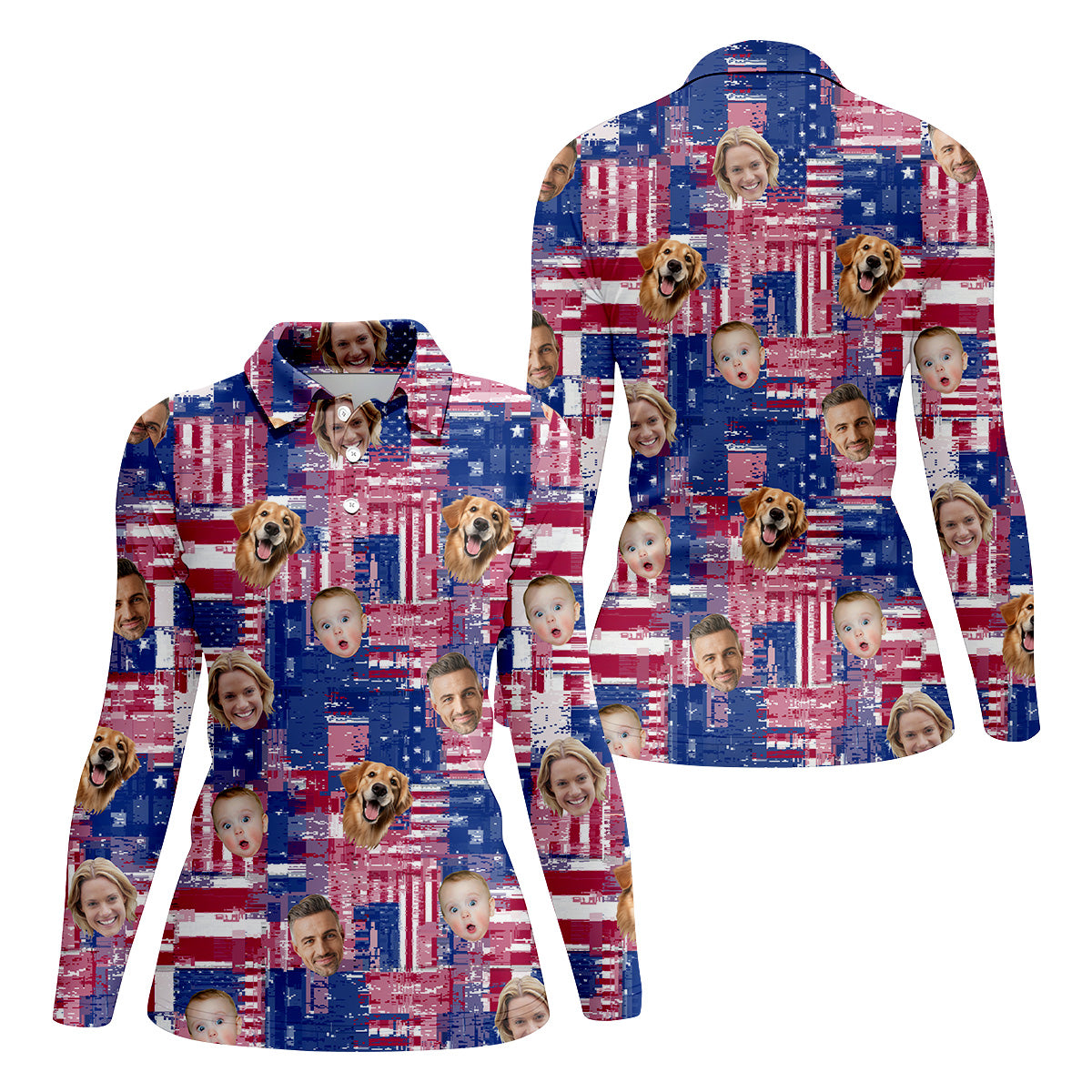 Golf Tops For Women, Family Portrait Golf Shirt, Patriotic Golf Polos, Custom Face Shirt, Personalized Dog Shirts, Long Sleeve Golf Shirts