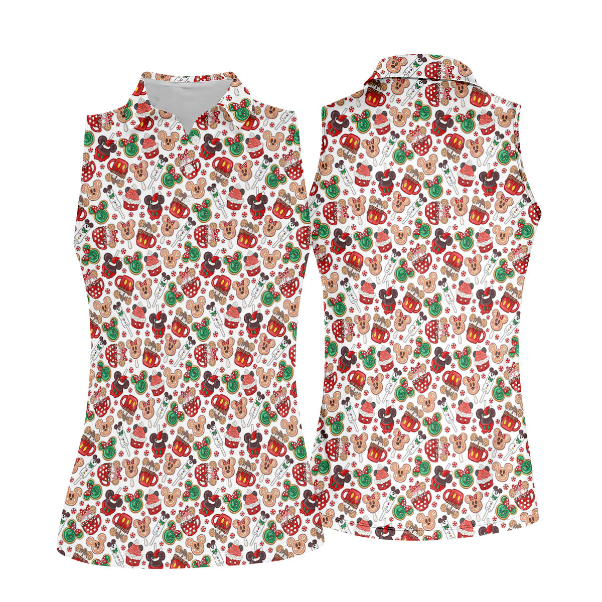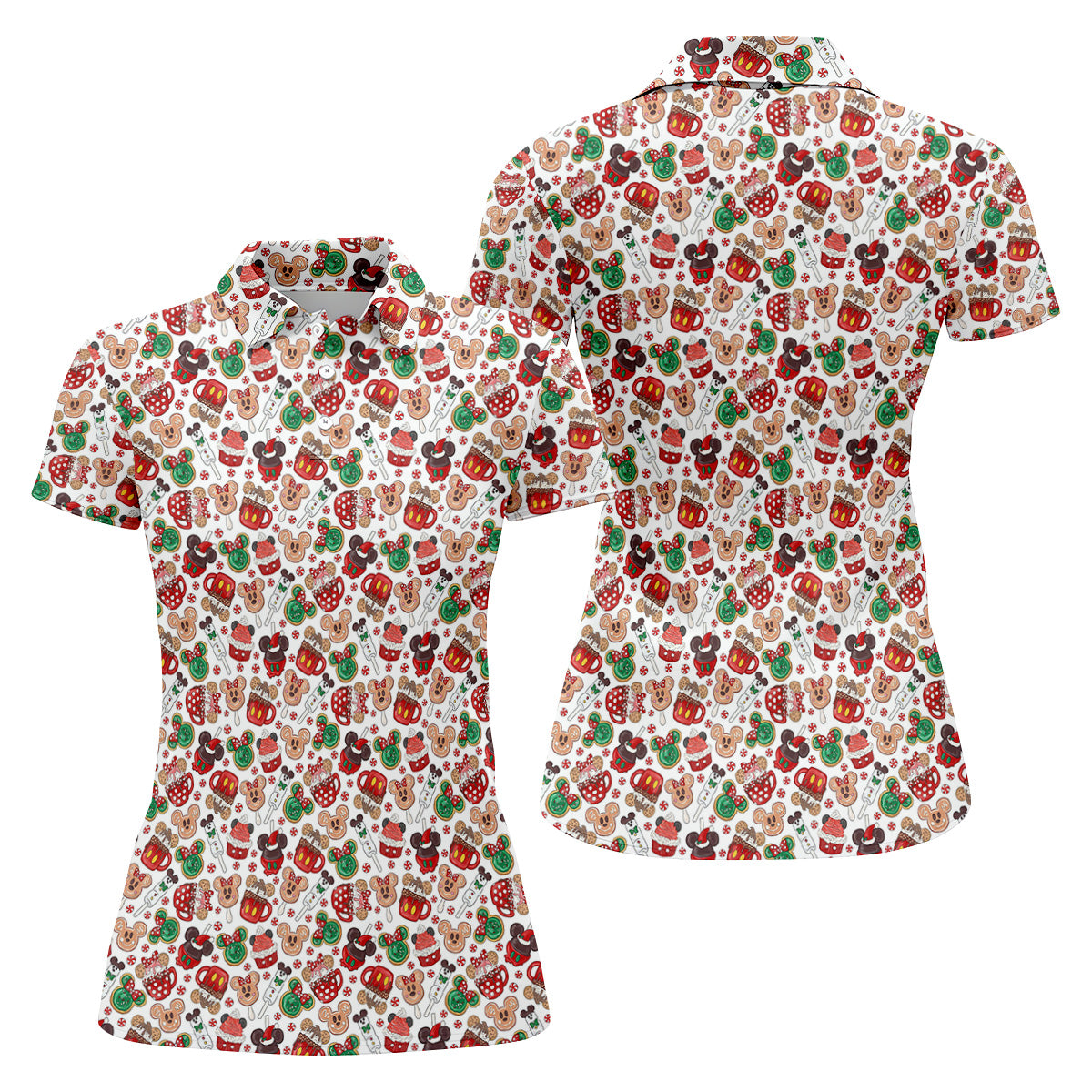 Cute Christmas Dessert Pattern Women's Golf Shirts, Ladies Golf Polos, Christmas Golf Shirt