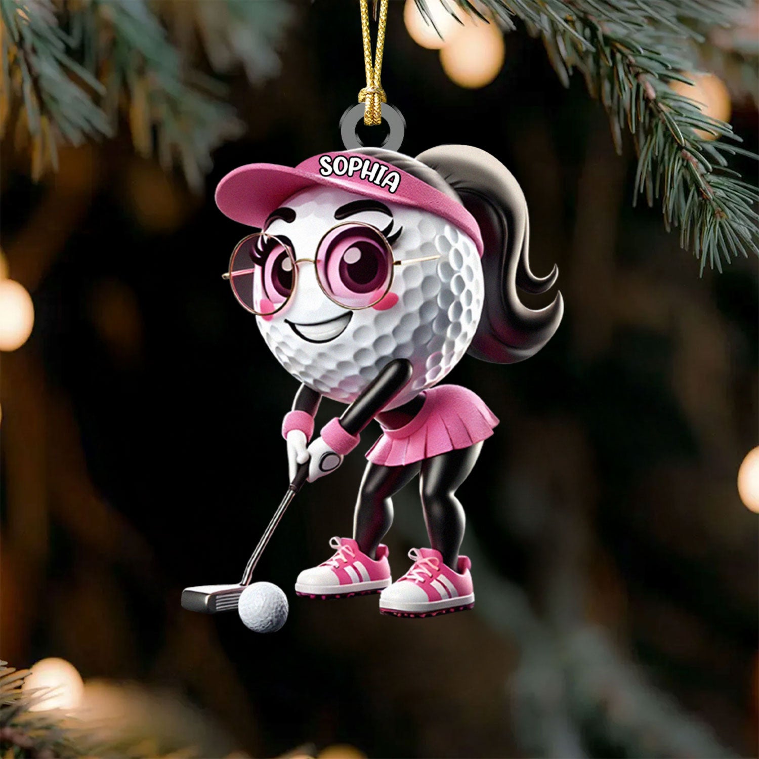 Cute Golf Ball Female Golf Acrylic Ornament, Golf Xmas Ornaments, Golf Christmas Gifts