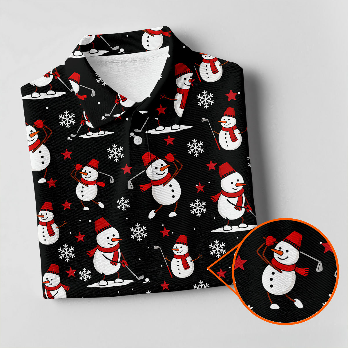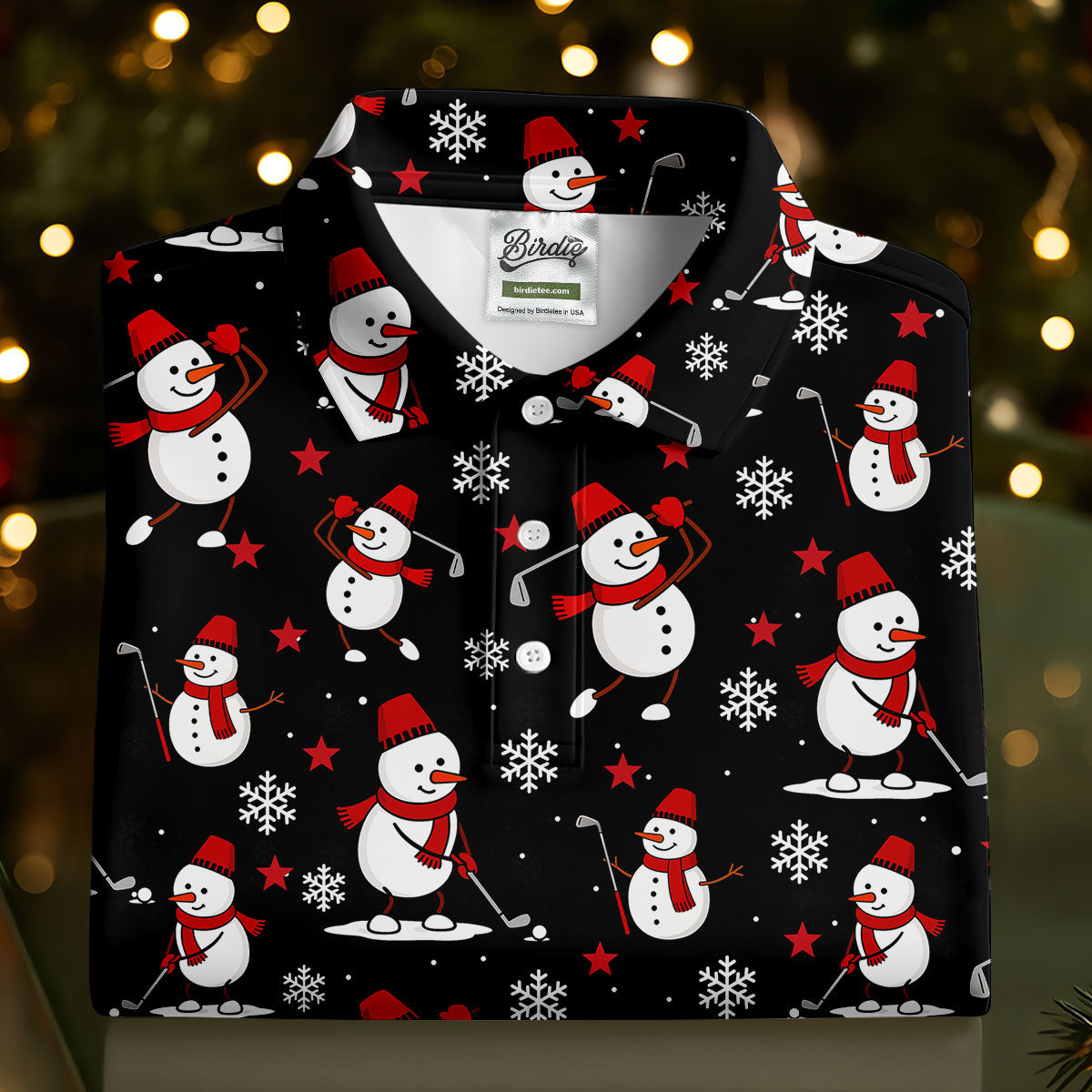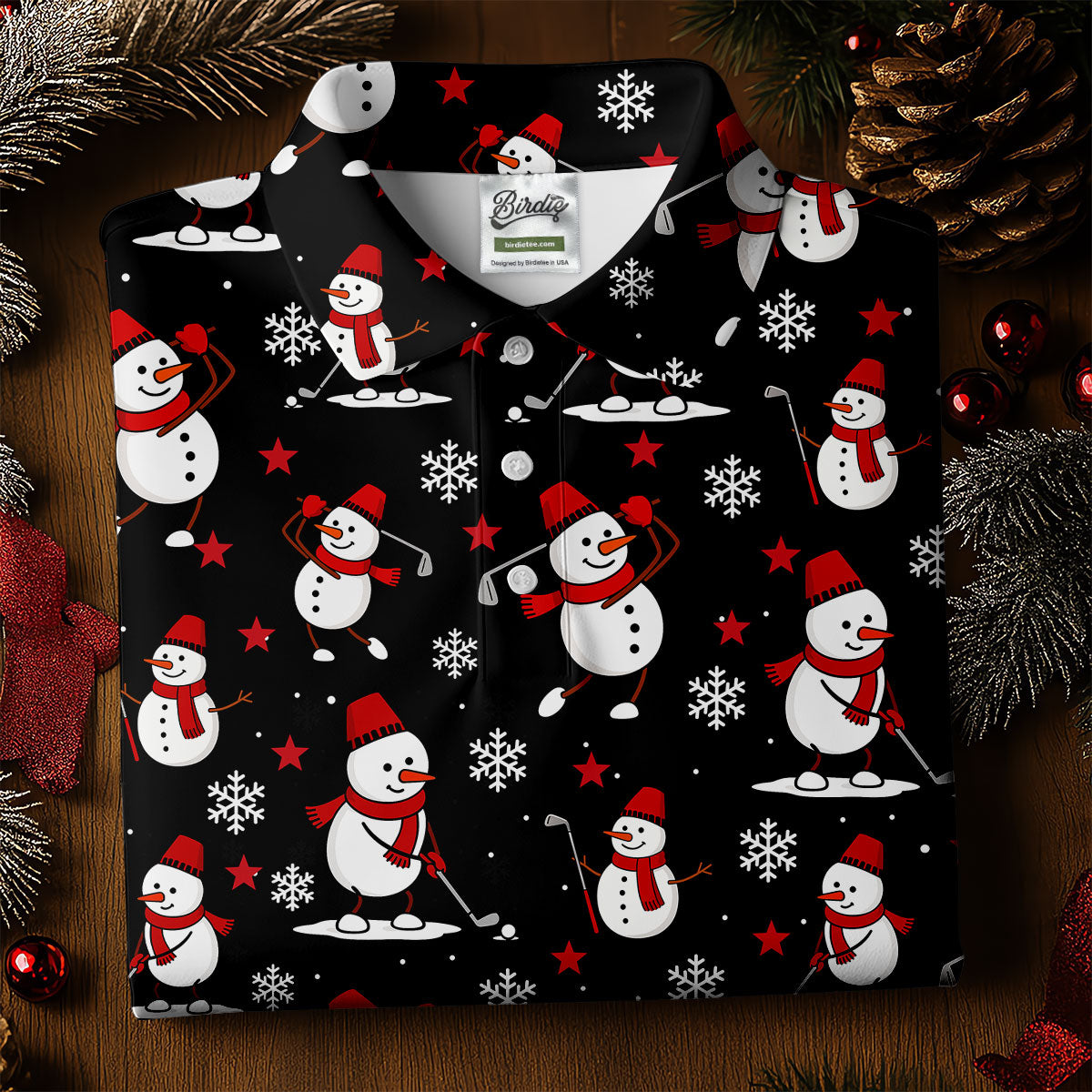 Cute Snowman Golf Pose Black Golf Shirt, Christmas Golf Shirt, Golf Shirts For Men, Golf Gift For Men