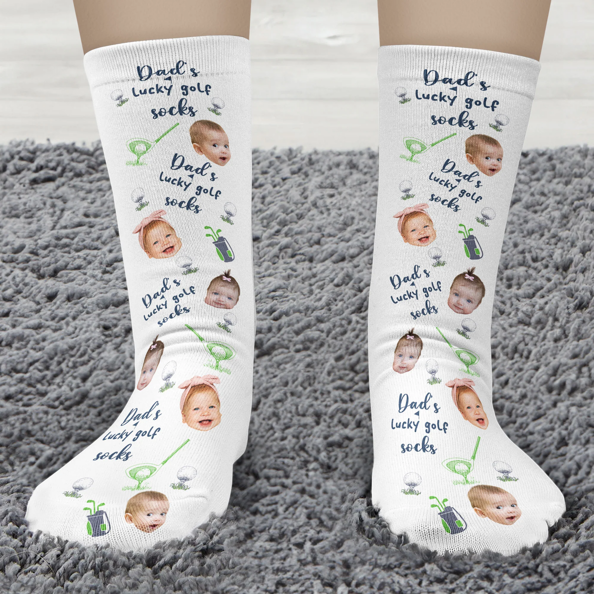 Dad's Lucky Golf Socks, Custom Face Socks, Christmas Golf Gift, Golf Gift For Men