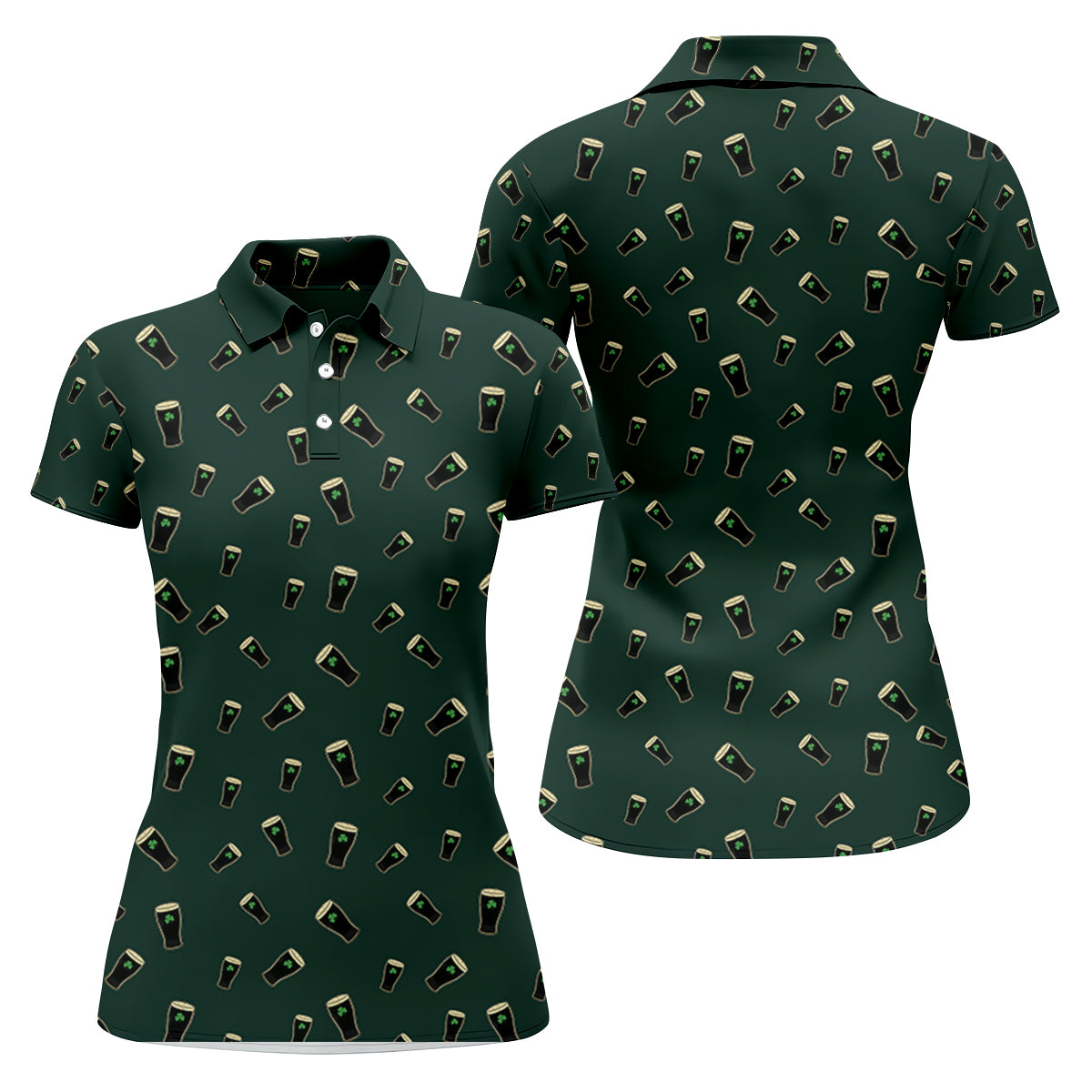 Dark Stout Beer St Patrick's Day Green Shamrock Golf Shirt, Ladies Golf Tops, Golf Shirt For Women