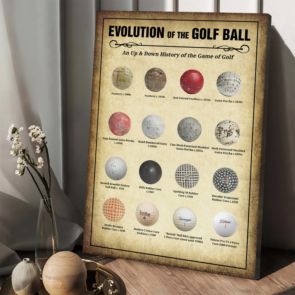 Evolution Of The Golf Ball Wall Canvas Print, Golf Canvas Wall Art, Golf Wall Art, Gift For Golfer