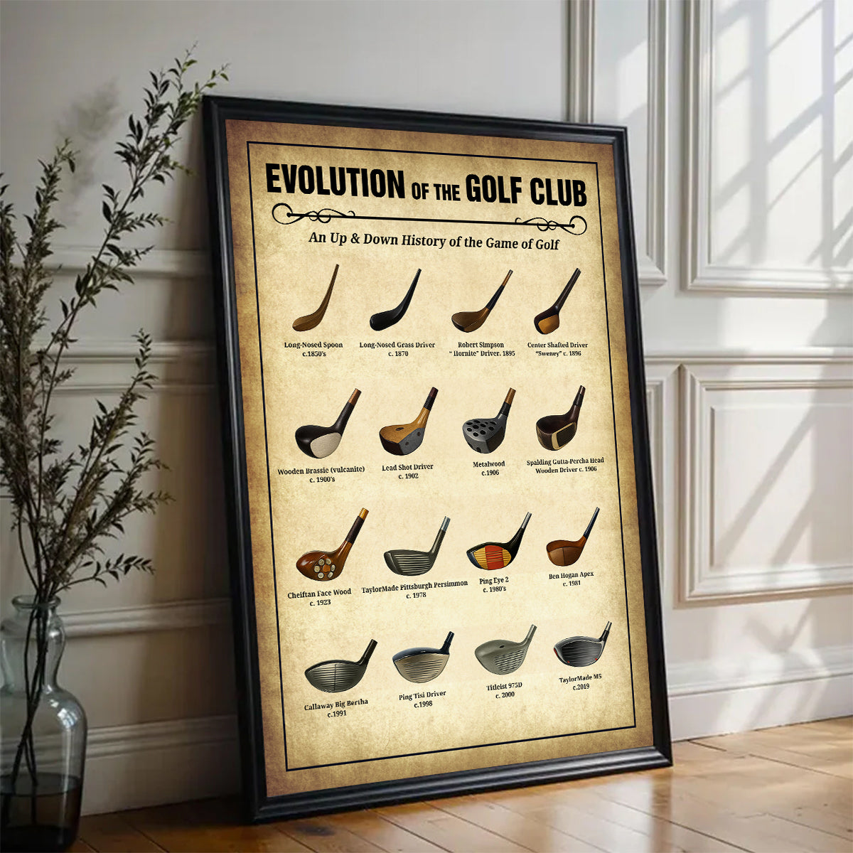 Evolution Of The Golf Club Wall Canvas Print, Golf Canvas Wall Art, Golf Wall Art, Gift For Golfer
