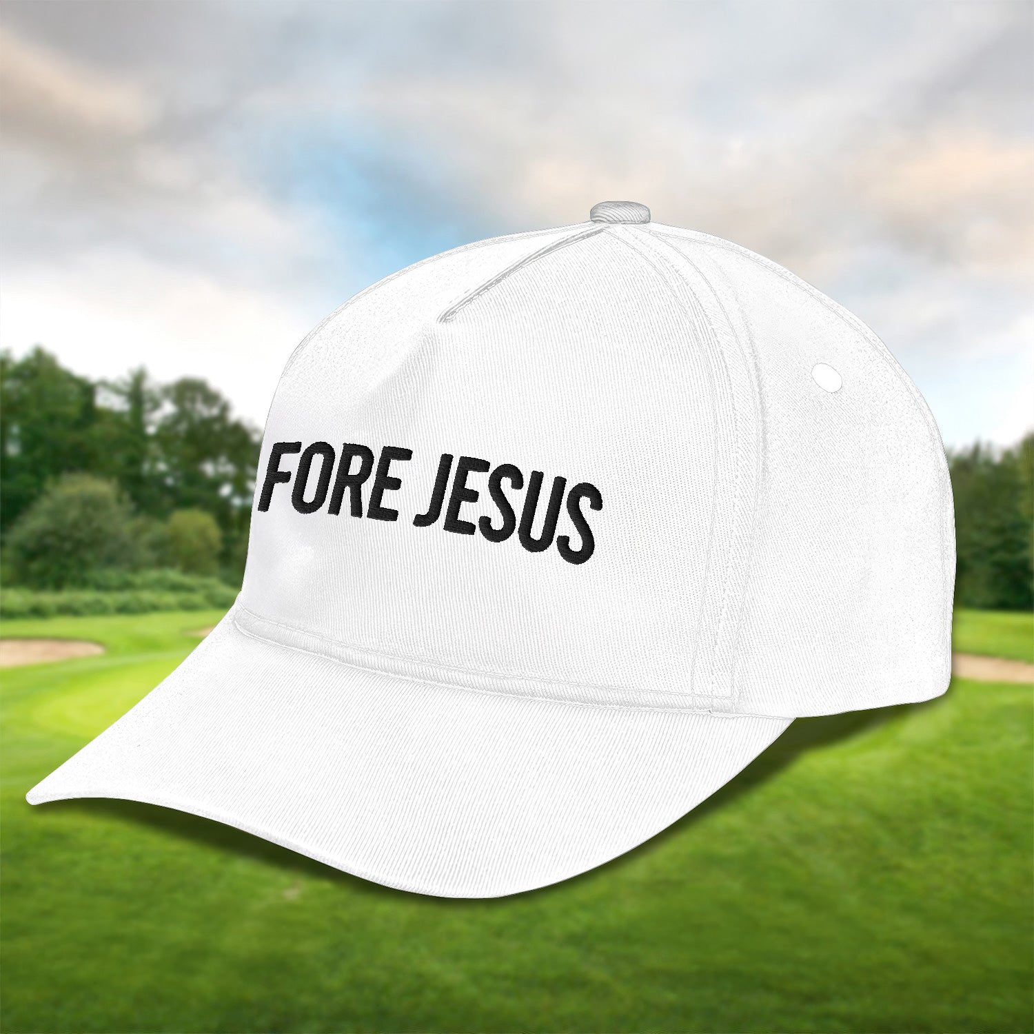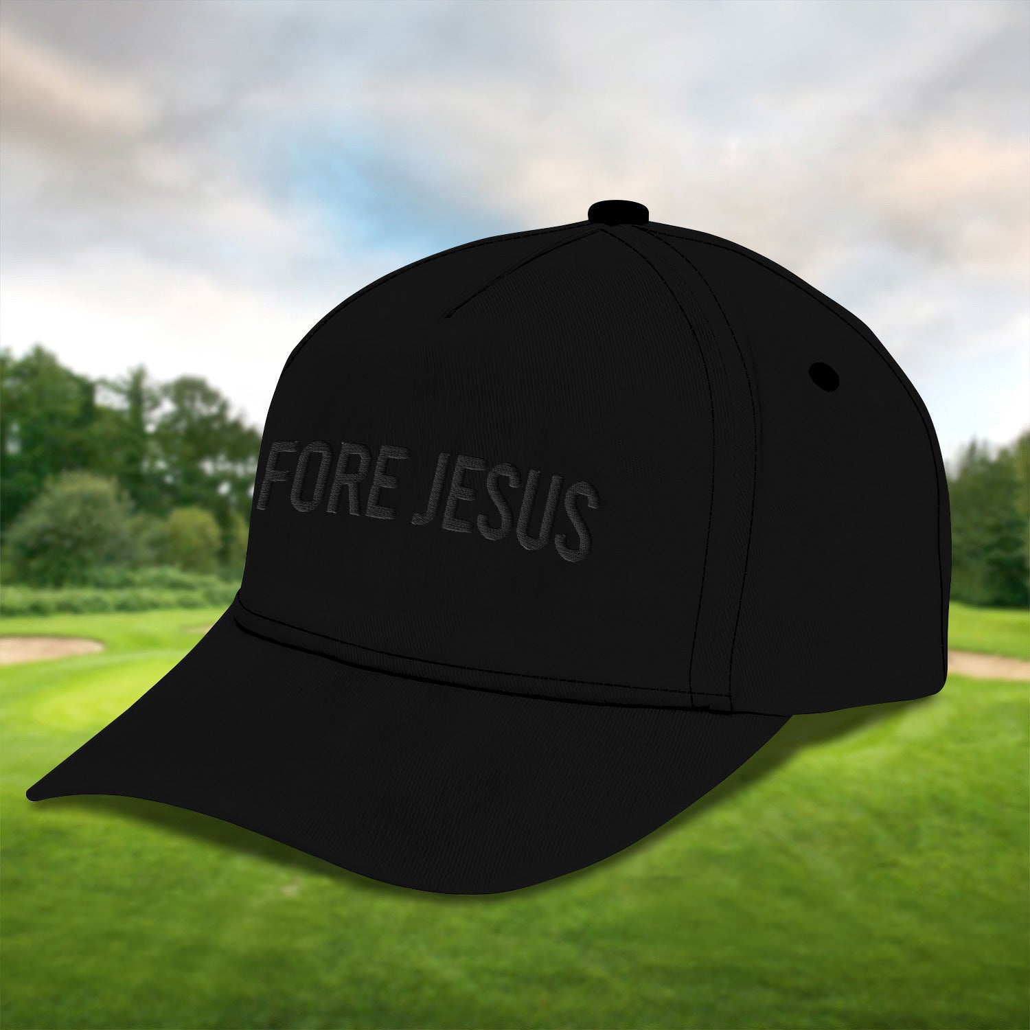 Fore Jesus Black Embroidered Baseball Cap, Funny Dad Hat, Christmas Golf Gift