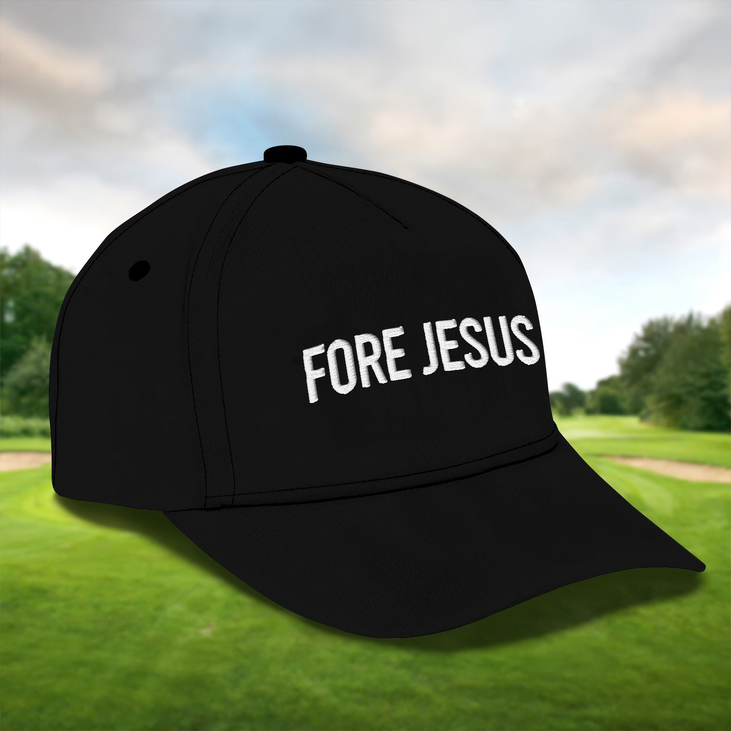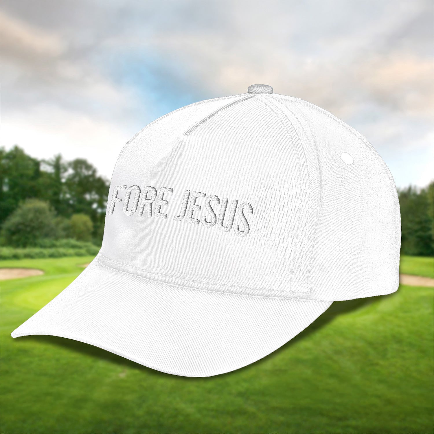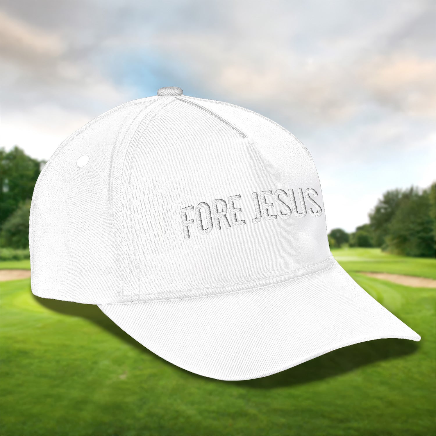Fore Jesus White Embroidered Baseball Cap, Funny Dad Hat, Christmas Golf Gift