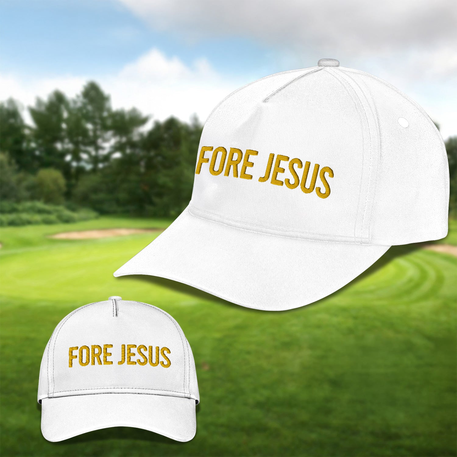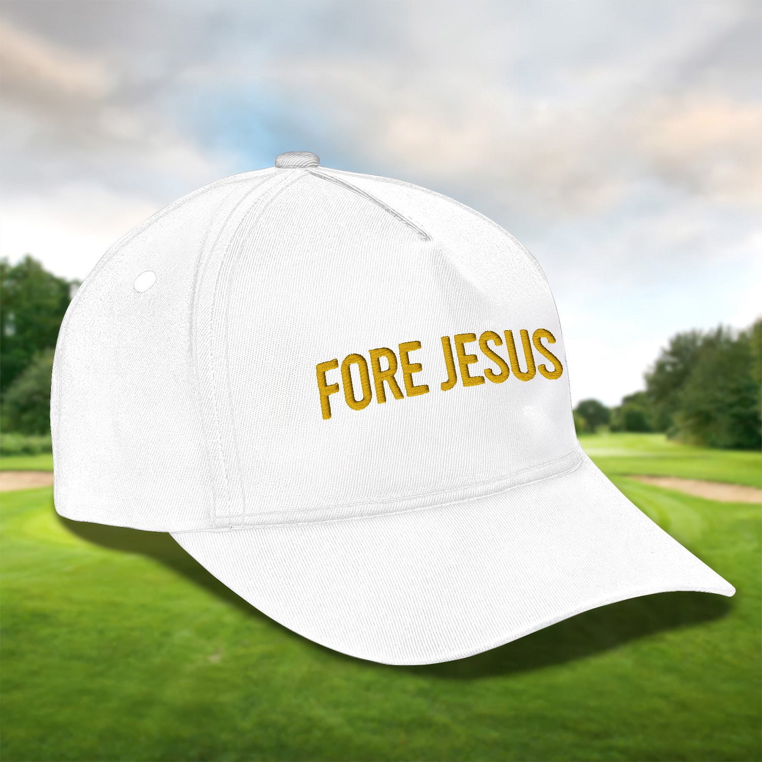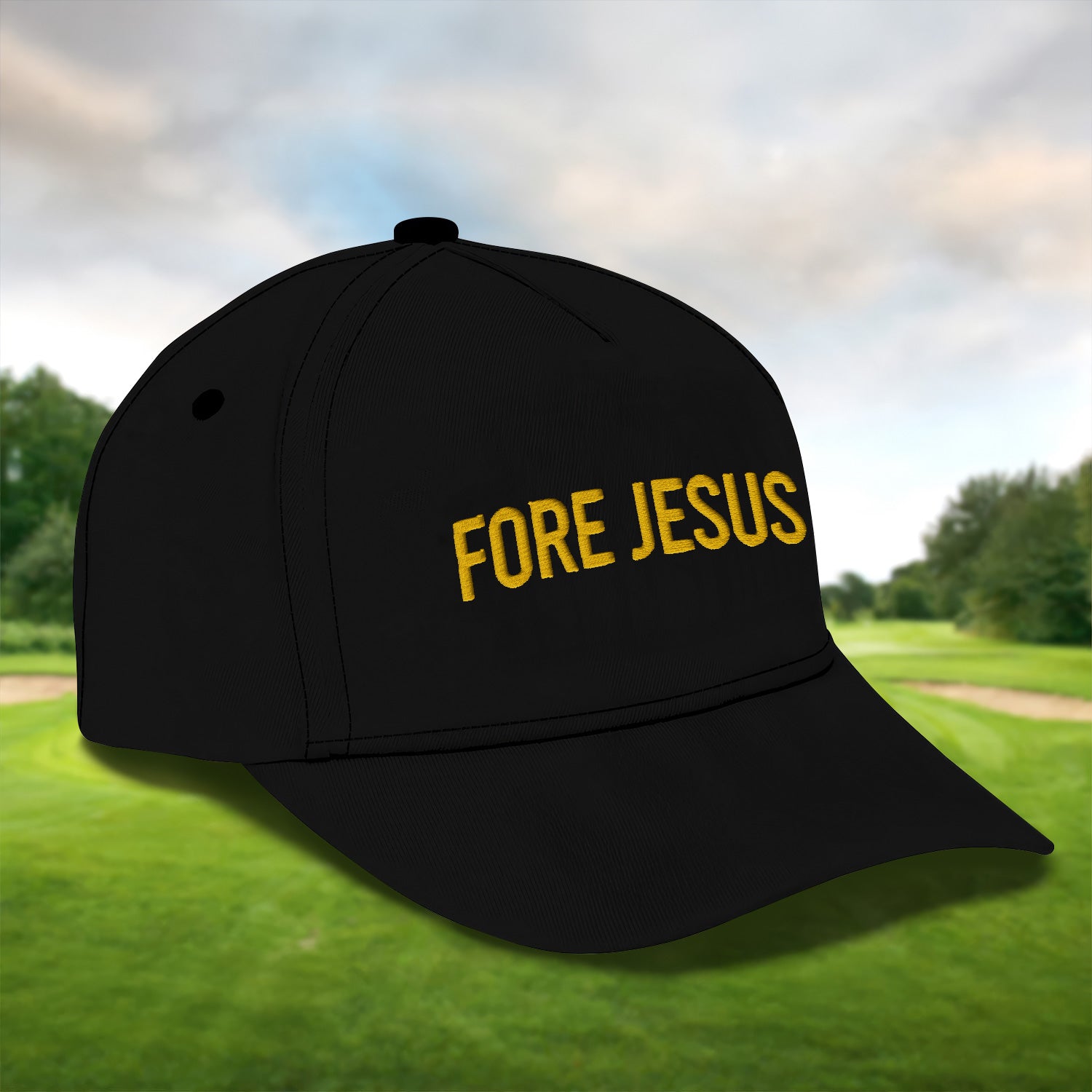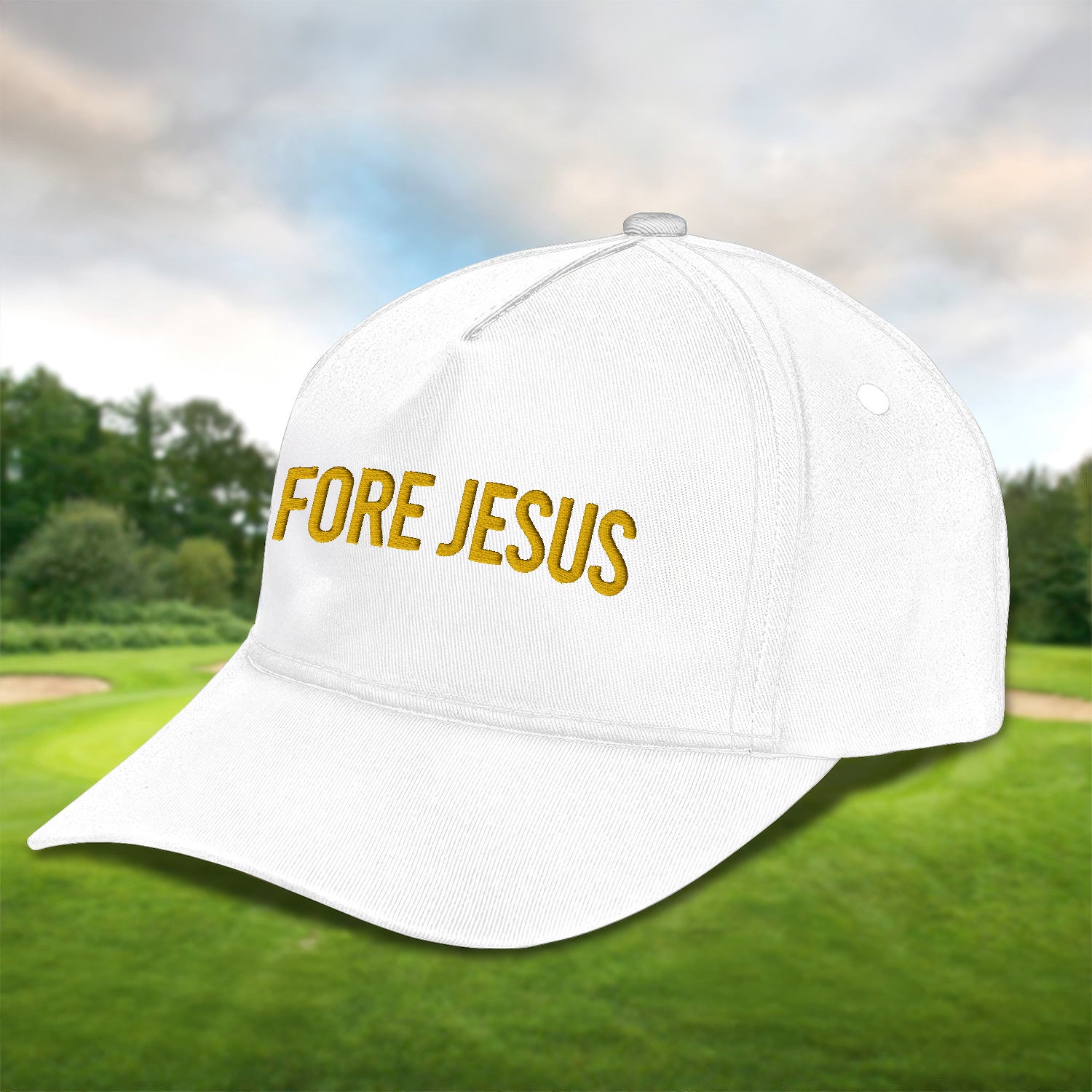 Fore Jesus Yellow Embroidered Baseball Cap, Funny Dad Hat, Christmas Golf Gift