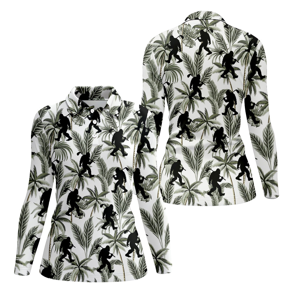 Funny Bigfoot Tropical Palm Leaves Golf Shirt For Women, Ladies Sleeveless Polo, Ladies Golf Shirts