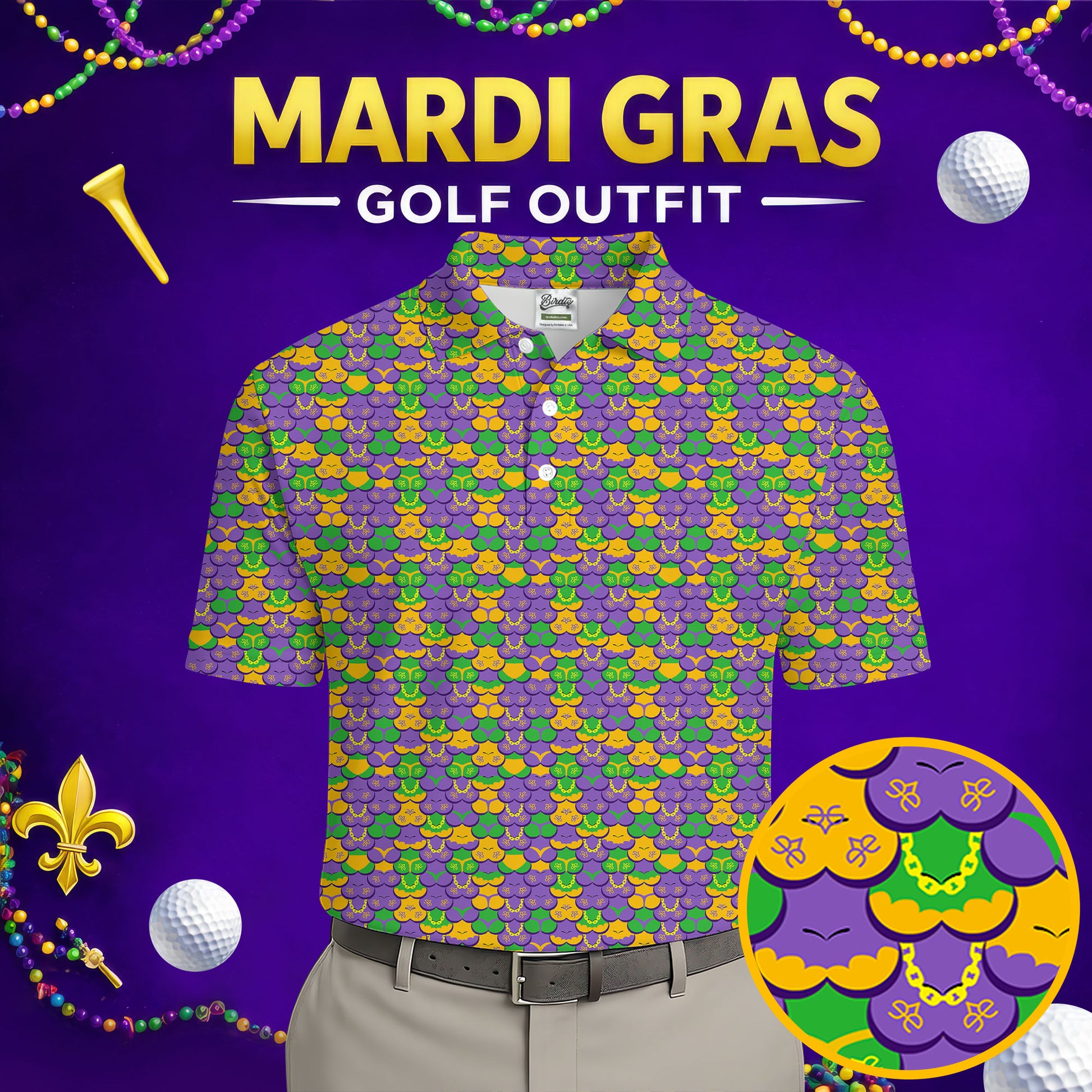 Funny Mardi Gras Adult Humor Men's Golf Polo Shirt, Fun Golf Shirt For Men, Funny Golf Shirt