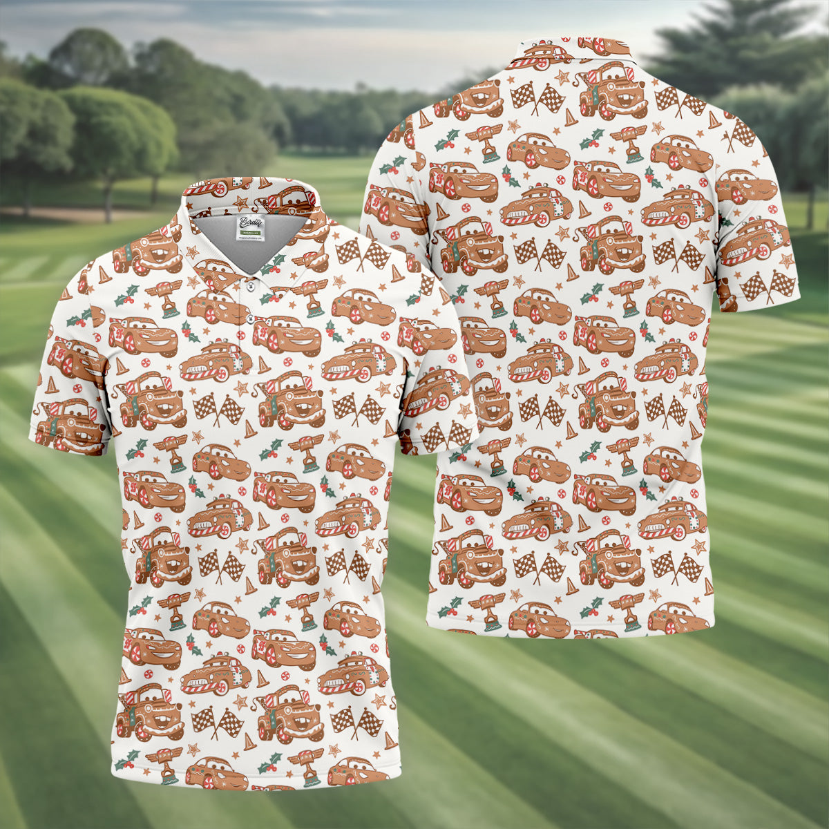 Funny Christmas Animation Car Polo Shirts For Men, Christmas Golf Shirt, Golf Gift For Men, Christmas Golf Shirt