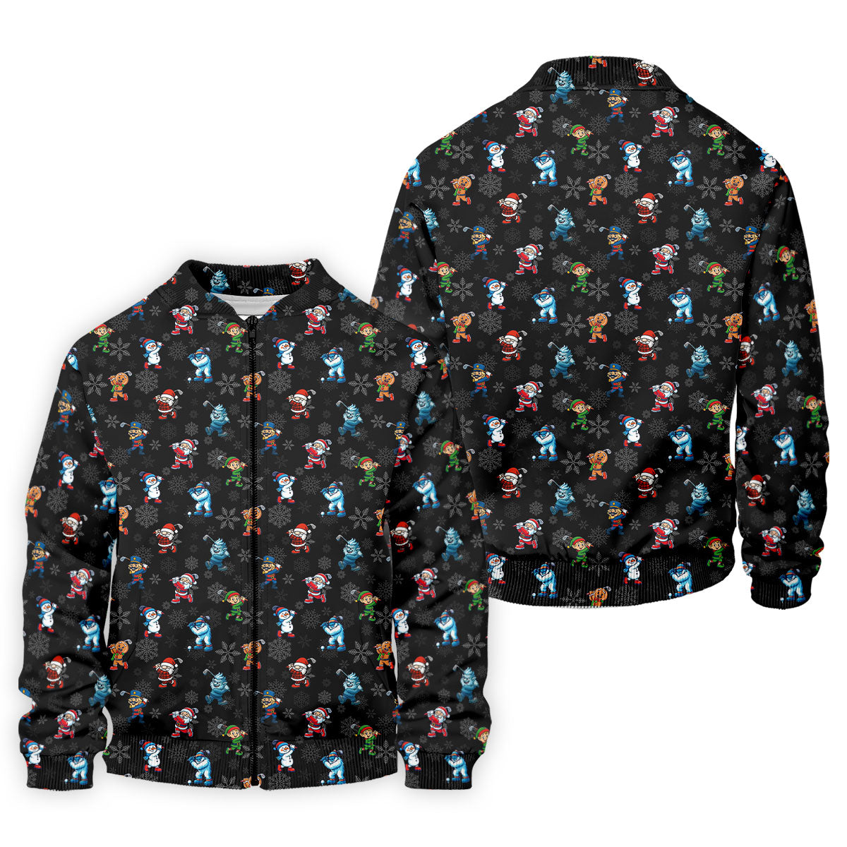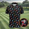 Funny Christmas Characters Golf Pose Black Golf Shirt, Christmas Golf Shirt, Polo Shirts For Men