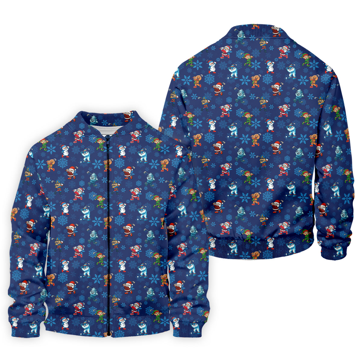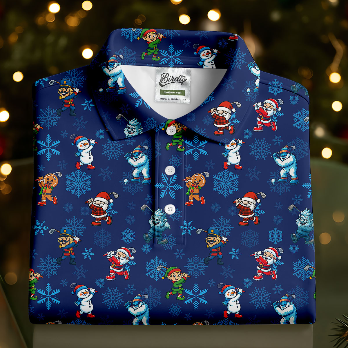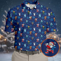 Funny Christmas Characters Golf Pose Navy Golf Shirt, Christmas Golf Shirt, Polo Shirts For Men