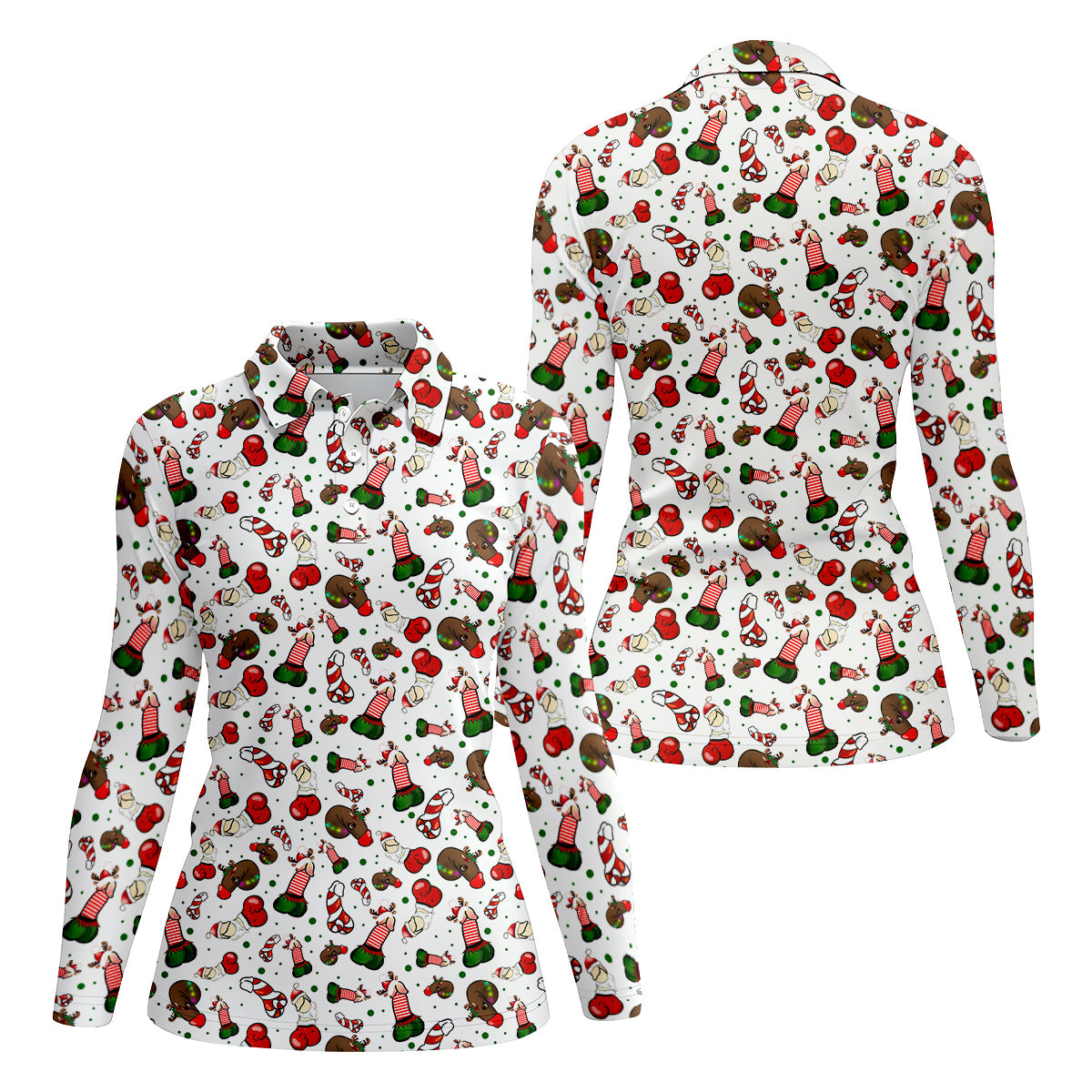 Funny Christmas Women's Golf Tops, Funny Dirty Ladies Golf Polos, Christmas Golf Shirt, Golfing Apparel