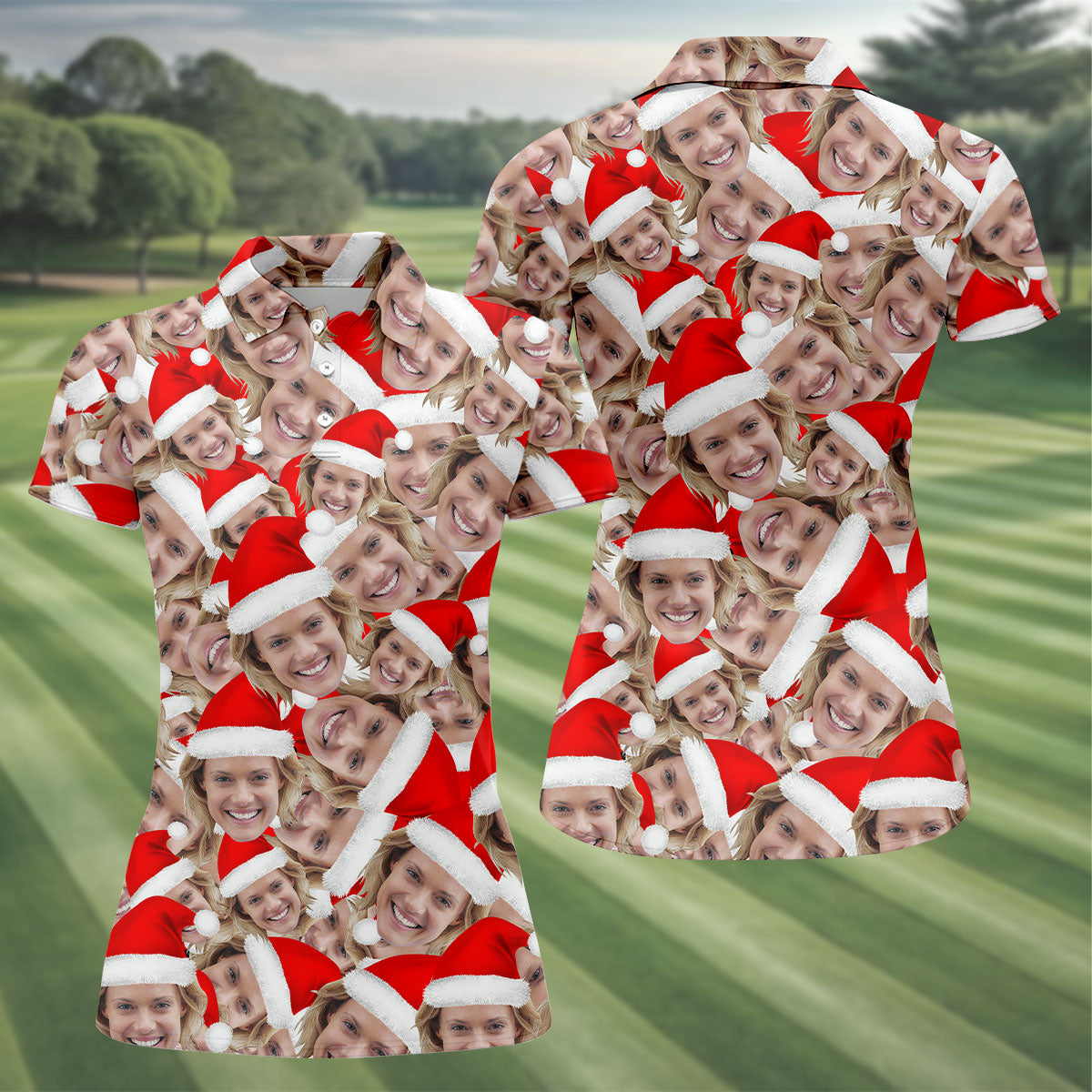 Funny Custom Face Christmas Golf Shirt, Women's Golf Shirts, Ladies Golf Polos, Christmas Golf Shirt