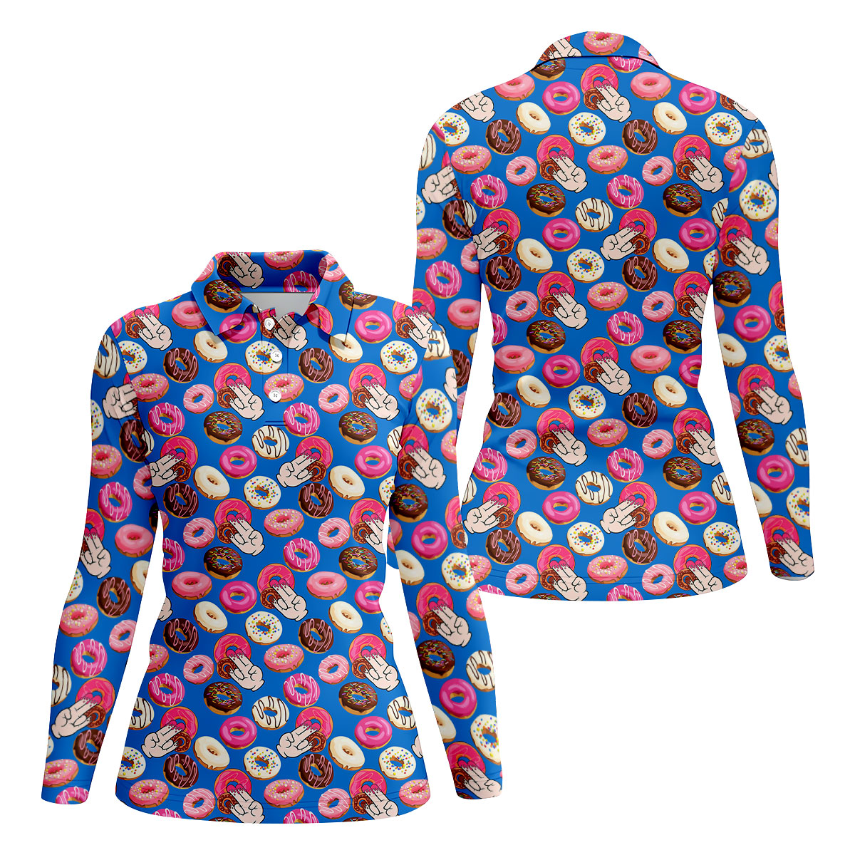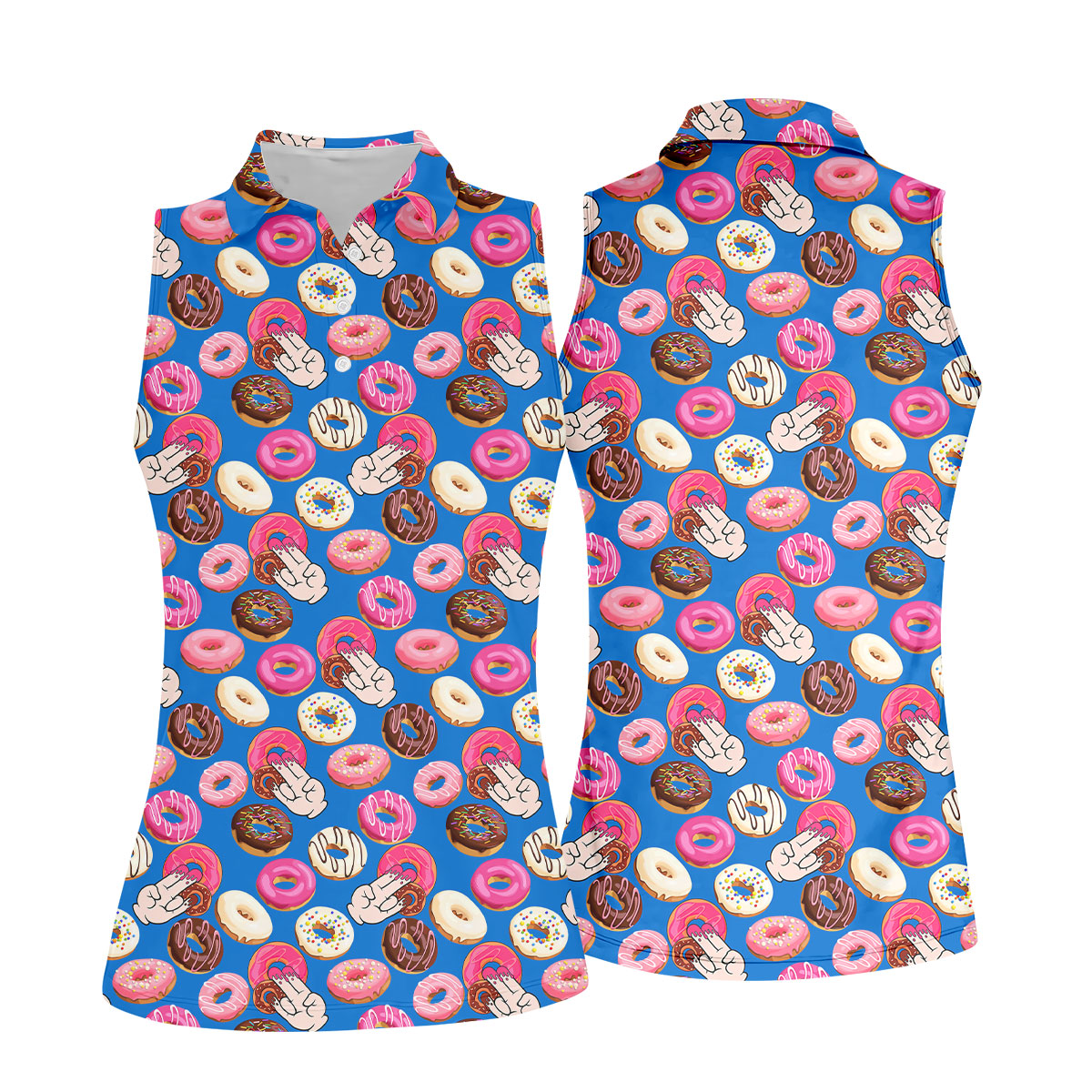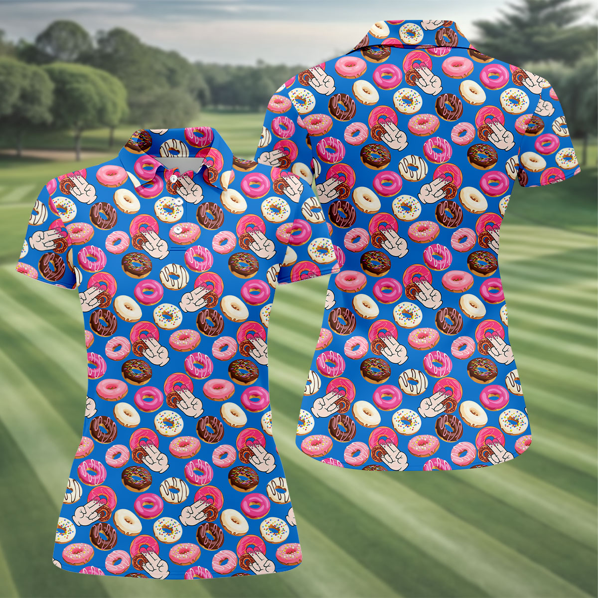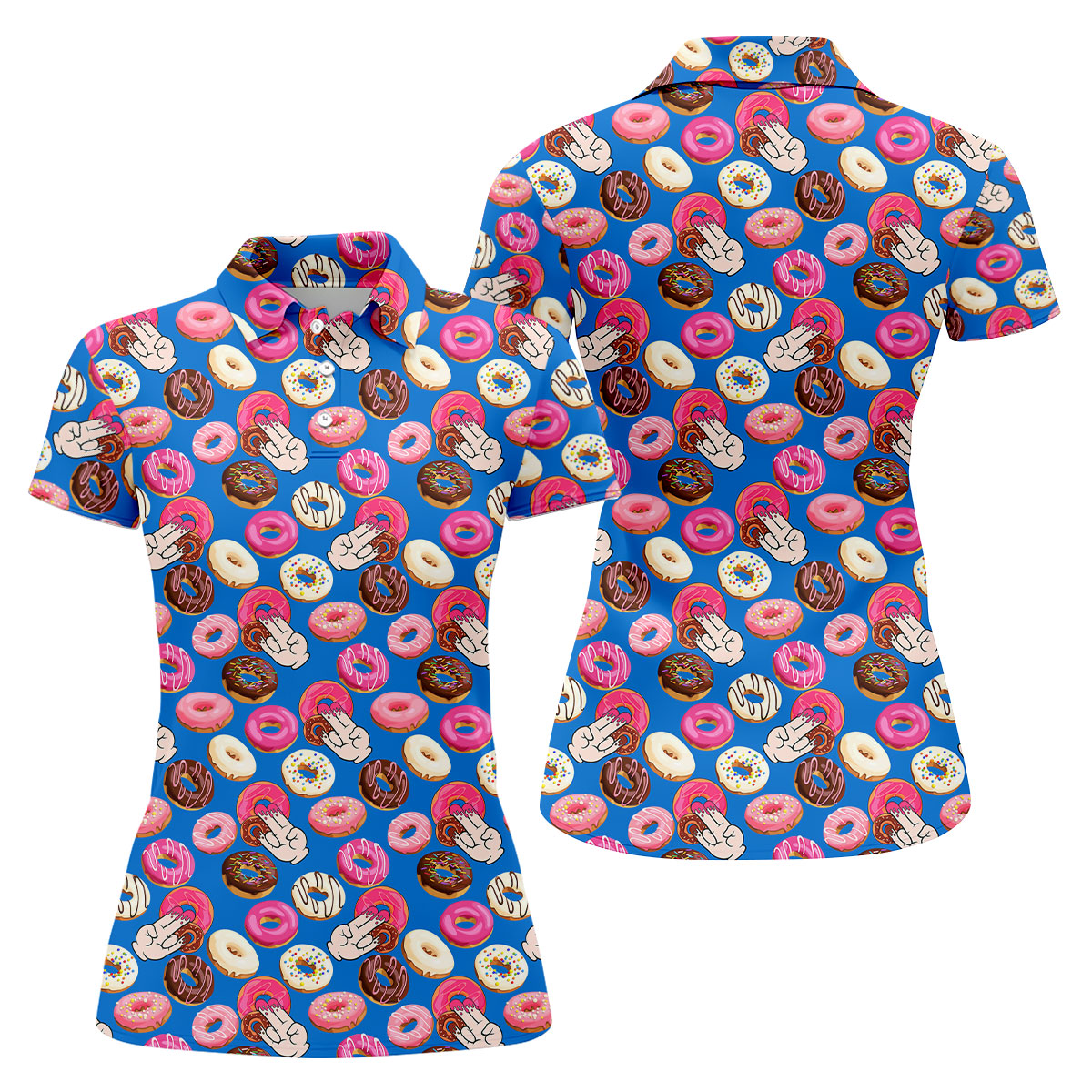 Funny Donut Adult Humor Blue And Pink Fun Women's Golf Shirts, Women's Golf Tops, Ladies Golf Shirts