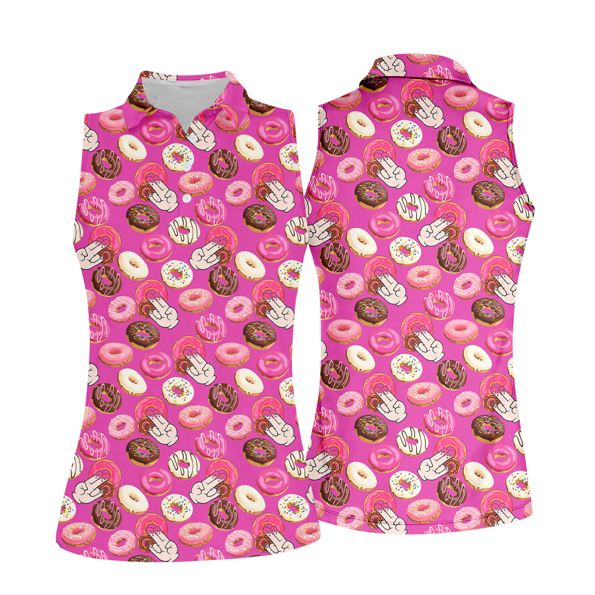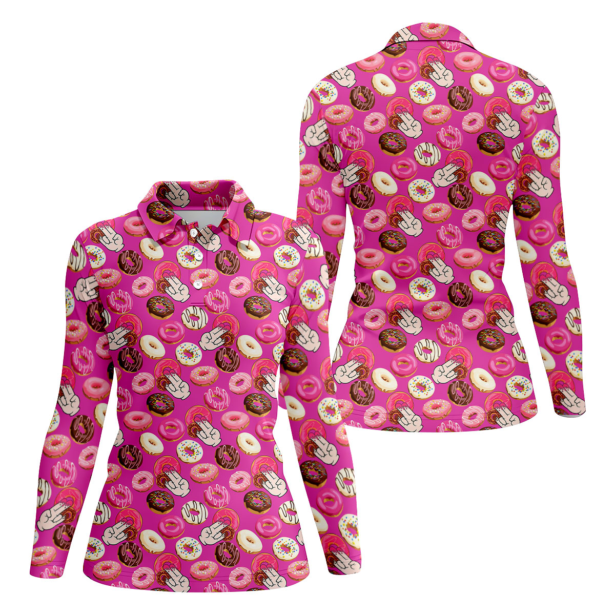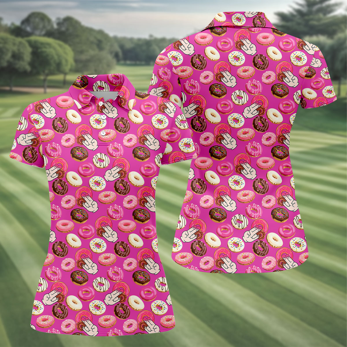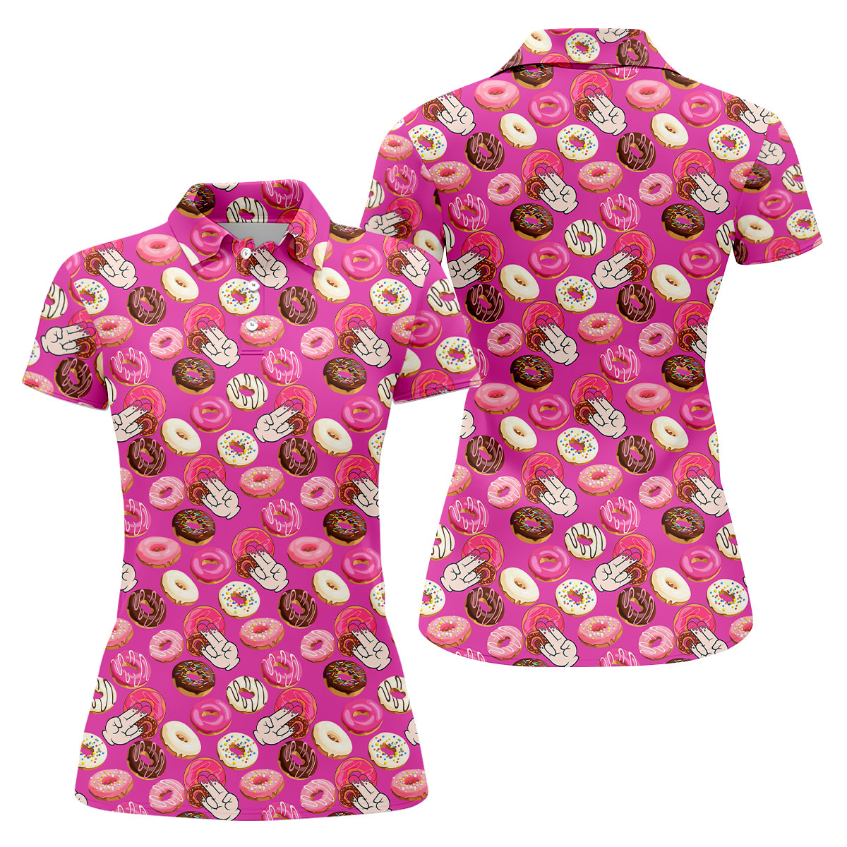 Funny Donut Adult Humor Pink Golf Shirt, Fun Women's Golf Shirts, Women's Golf Tops, Ladies Golf Shirts