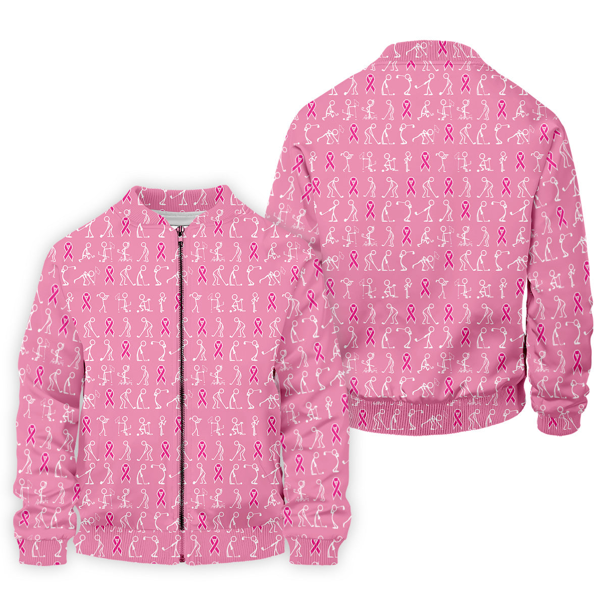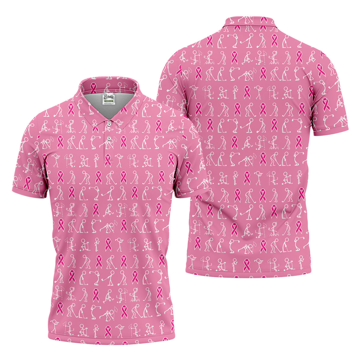 Funny Stick Figure Men's Golf Shirt, Breast Cancer Awareness Shirt, Pink Golf Shirt, Golf Shirts For Men