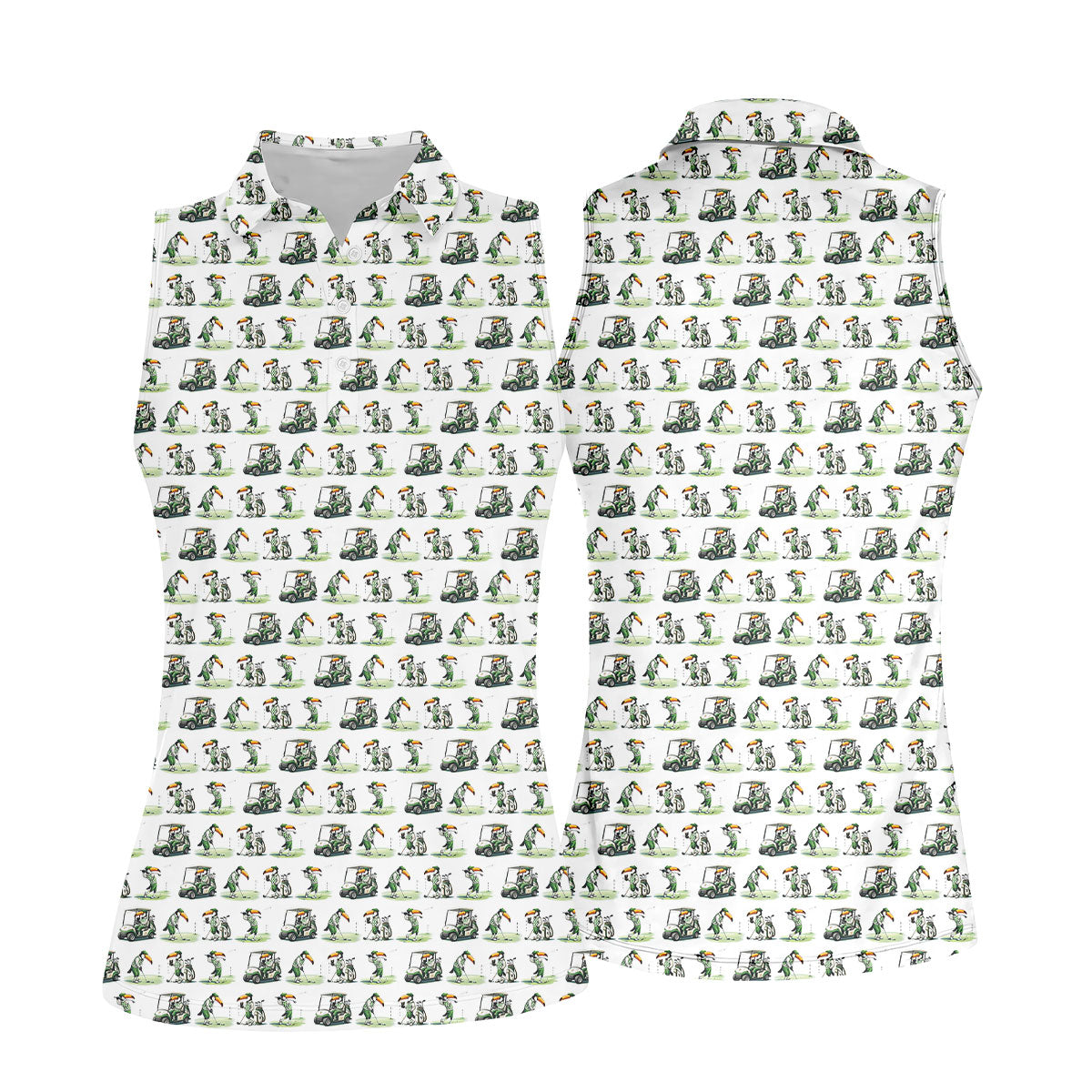 Funny Toucan Golf Pose White And Green Ladies Golf Tops, Fun Women's Golf Shirts, Golf Shirt For Women