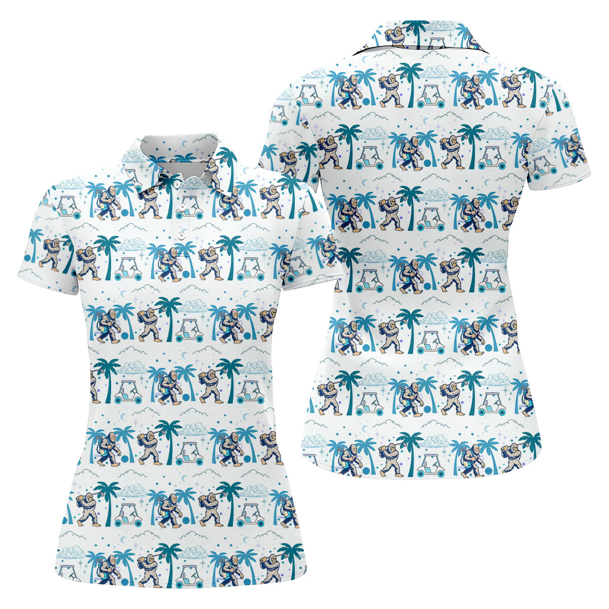 Funny Tropical Golf Cart Bigfoot Golf Shirt, Ladies Sleeveless Polo, Womens Golf Shirts, Golfing Apparel