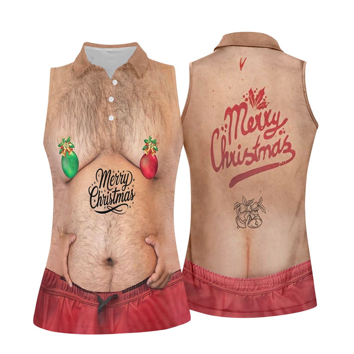 Funny Ugly Hairy Belly Women's Golf Tops, Christmas Golf Shirt, Ladies Golf Polos, Golfing Apparel