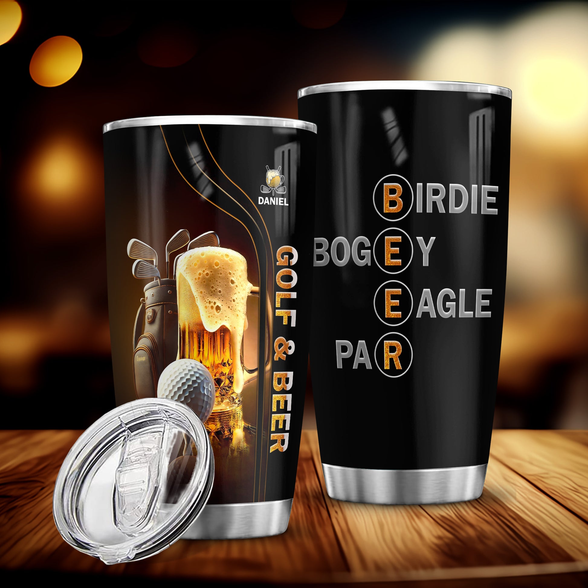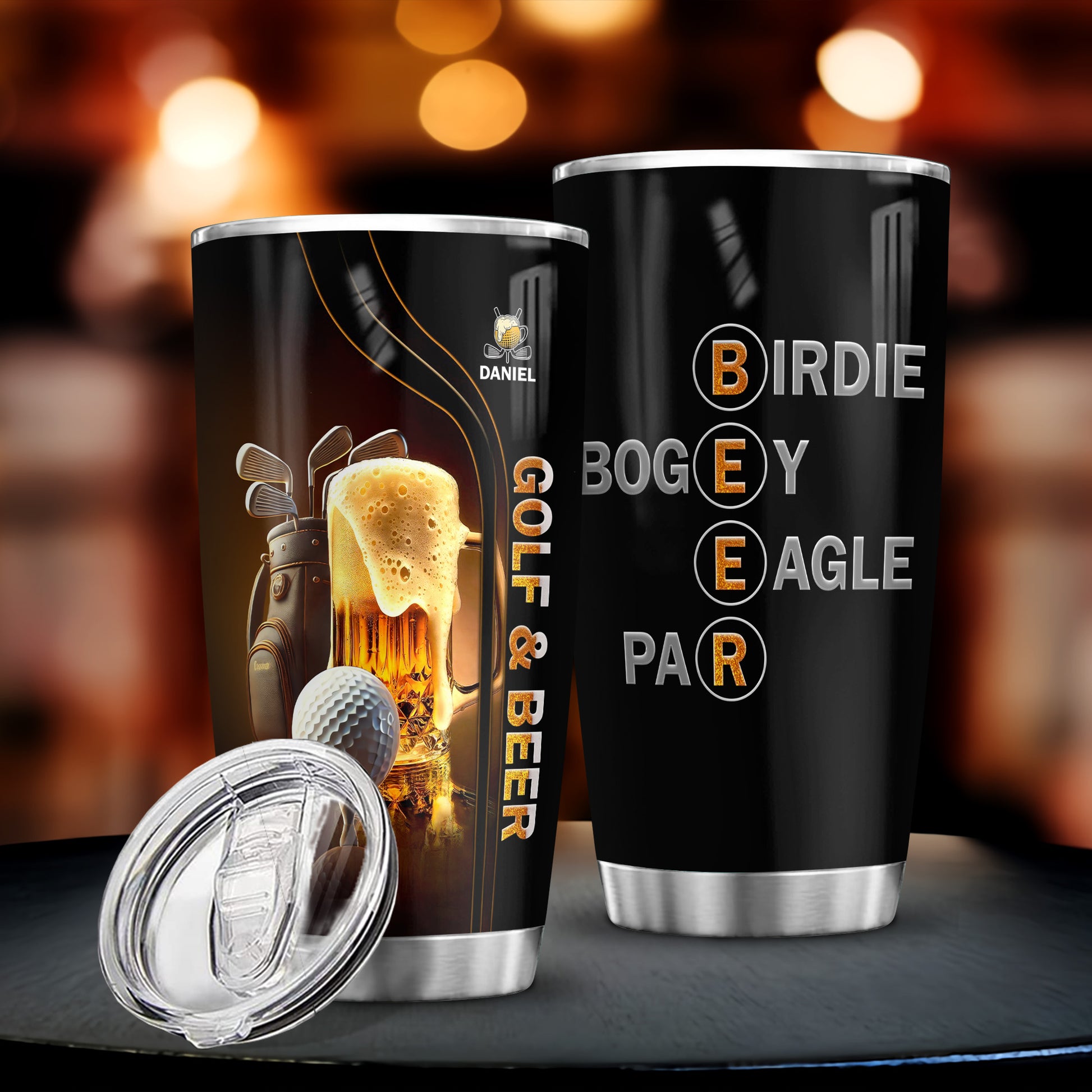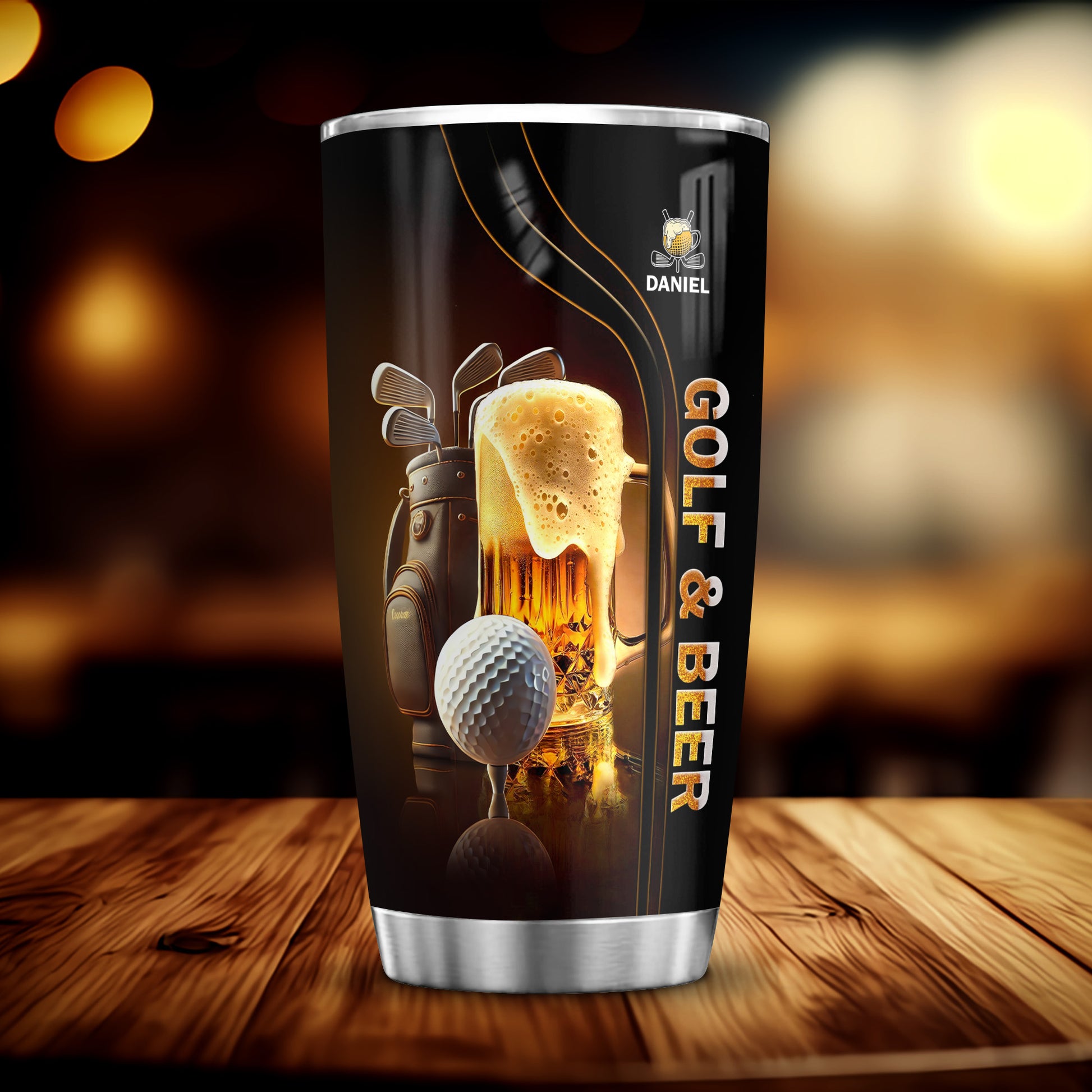 Golf And Beer Custom Stainless Steel Tumbler, 20oz Golf Tumbler, Gift For Golfers