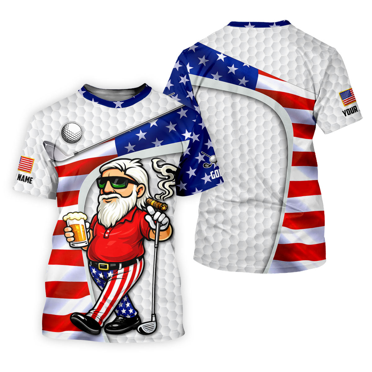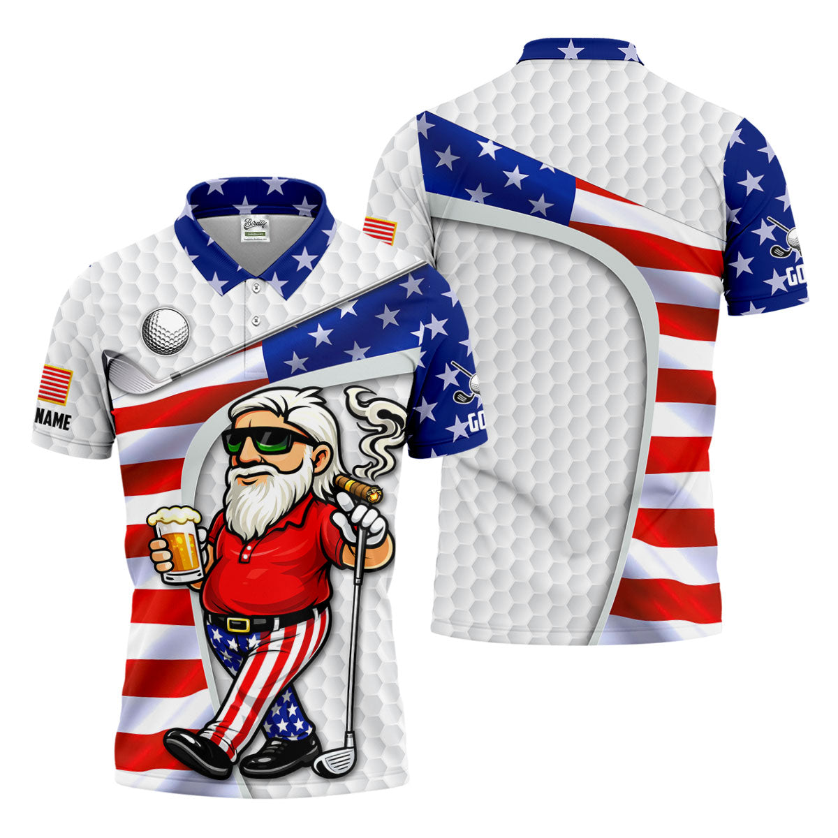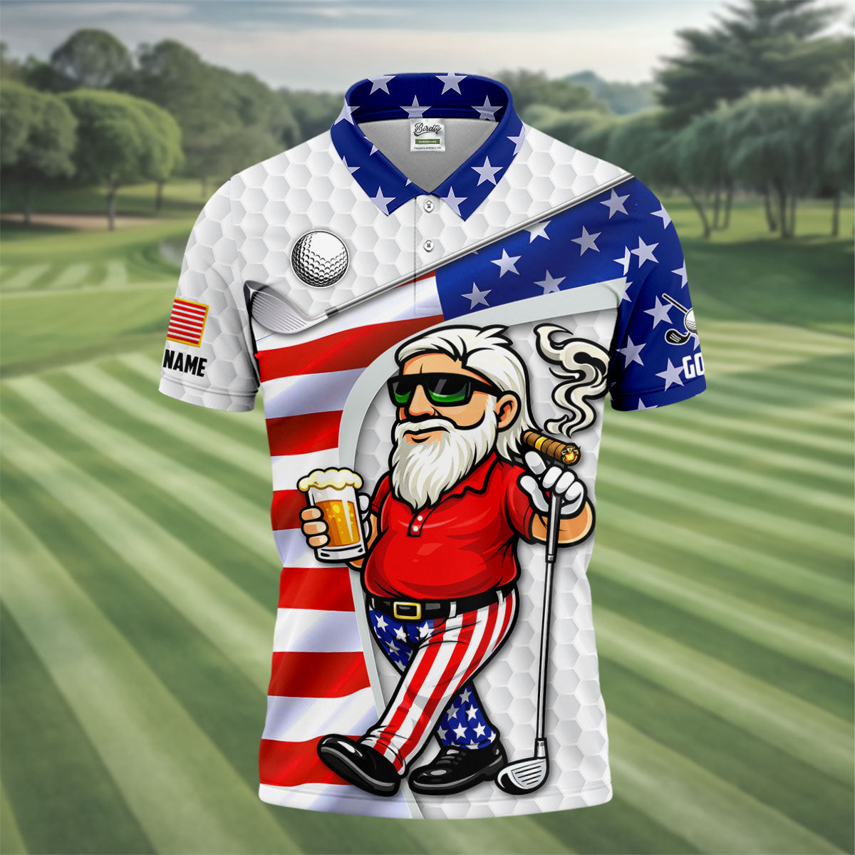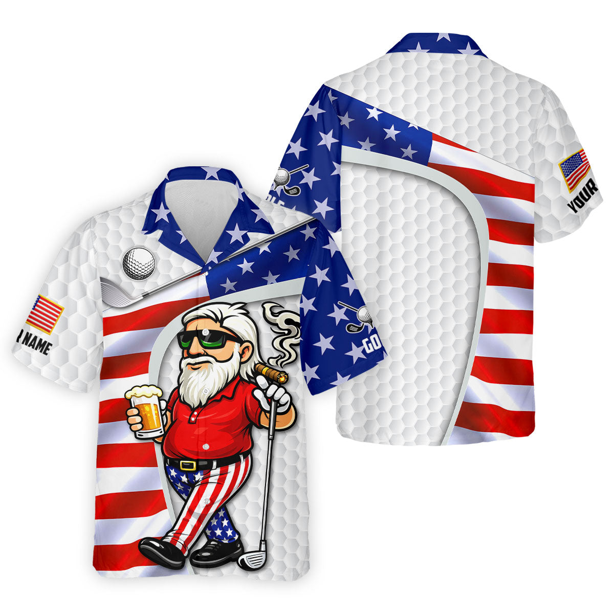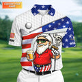 Golf And Beer Patriotic Man Golf Ball Pattern 4th Of July White Golf Shirt, 250th Anniversary Golf Shirts For Men