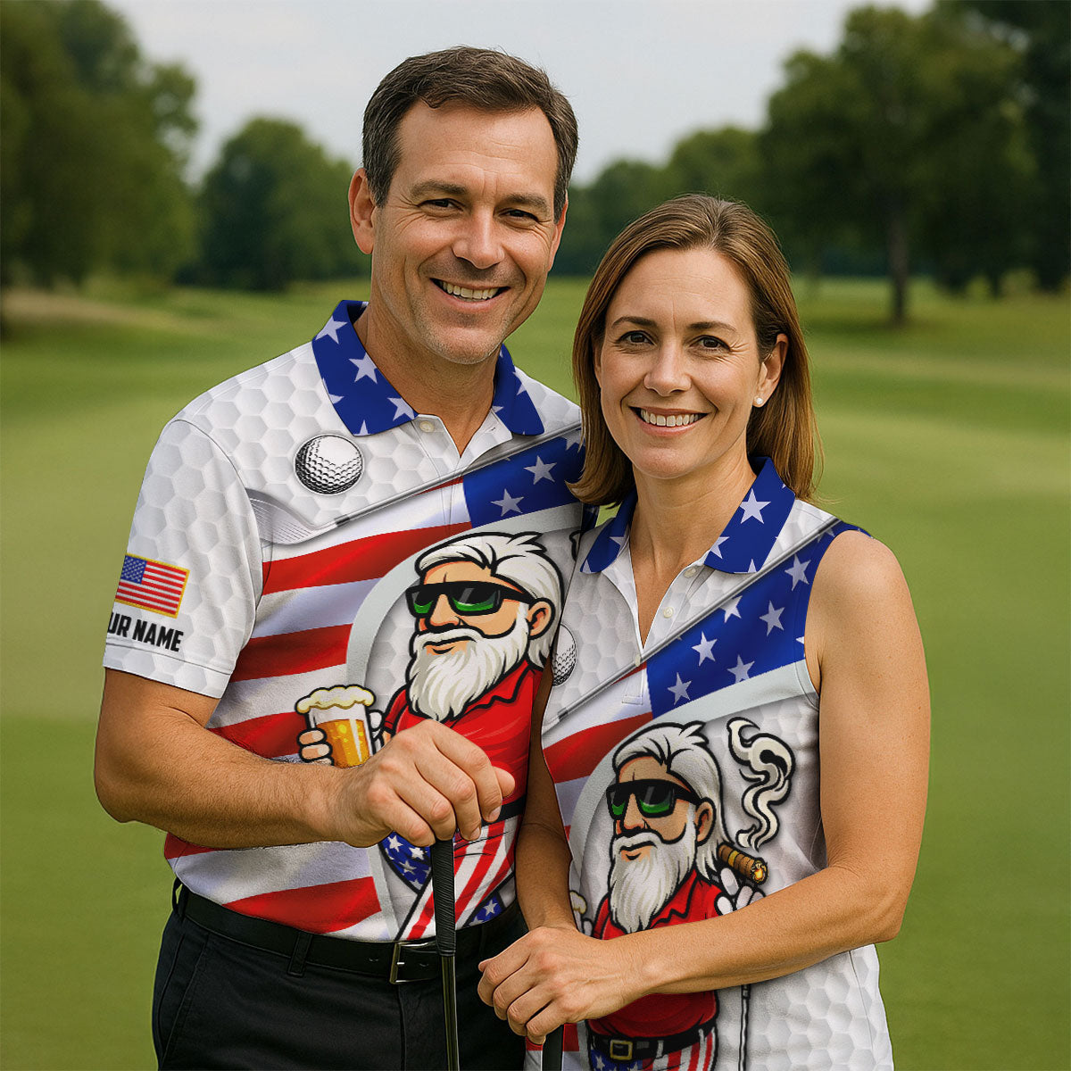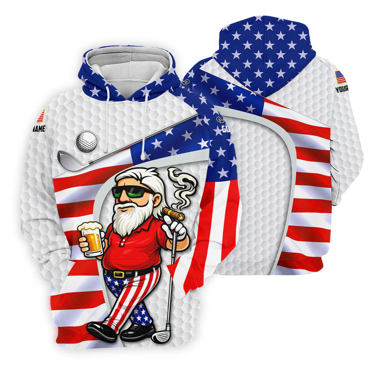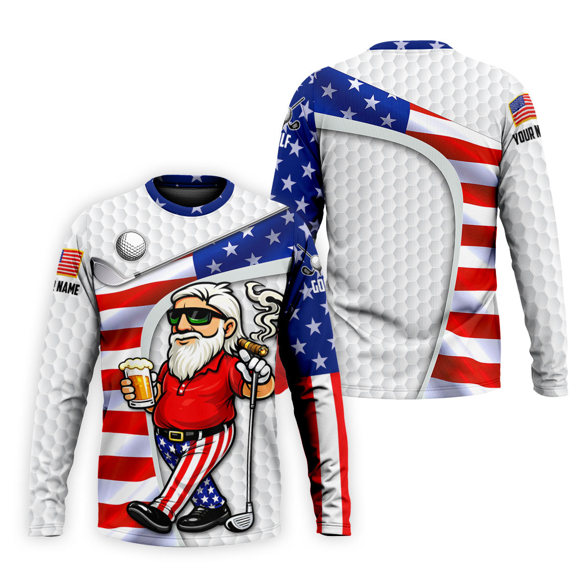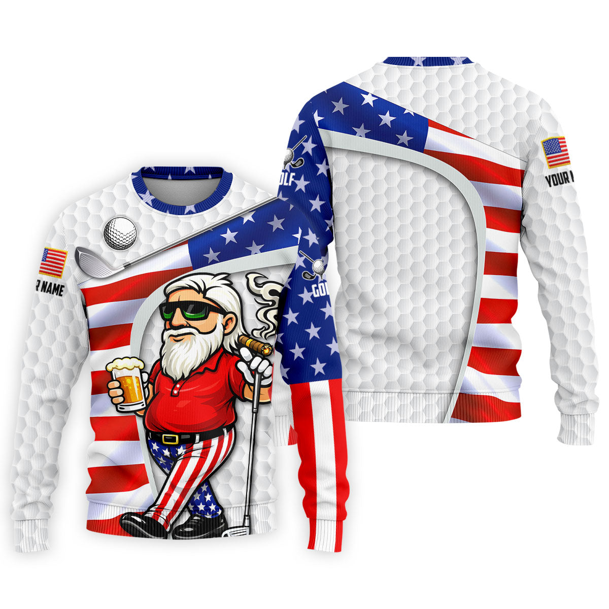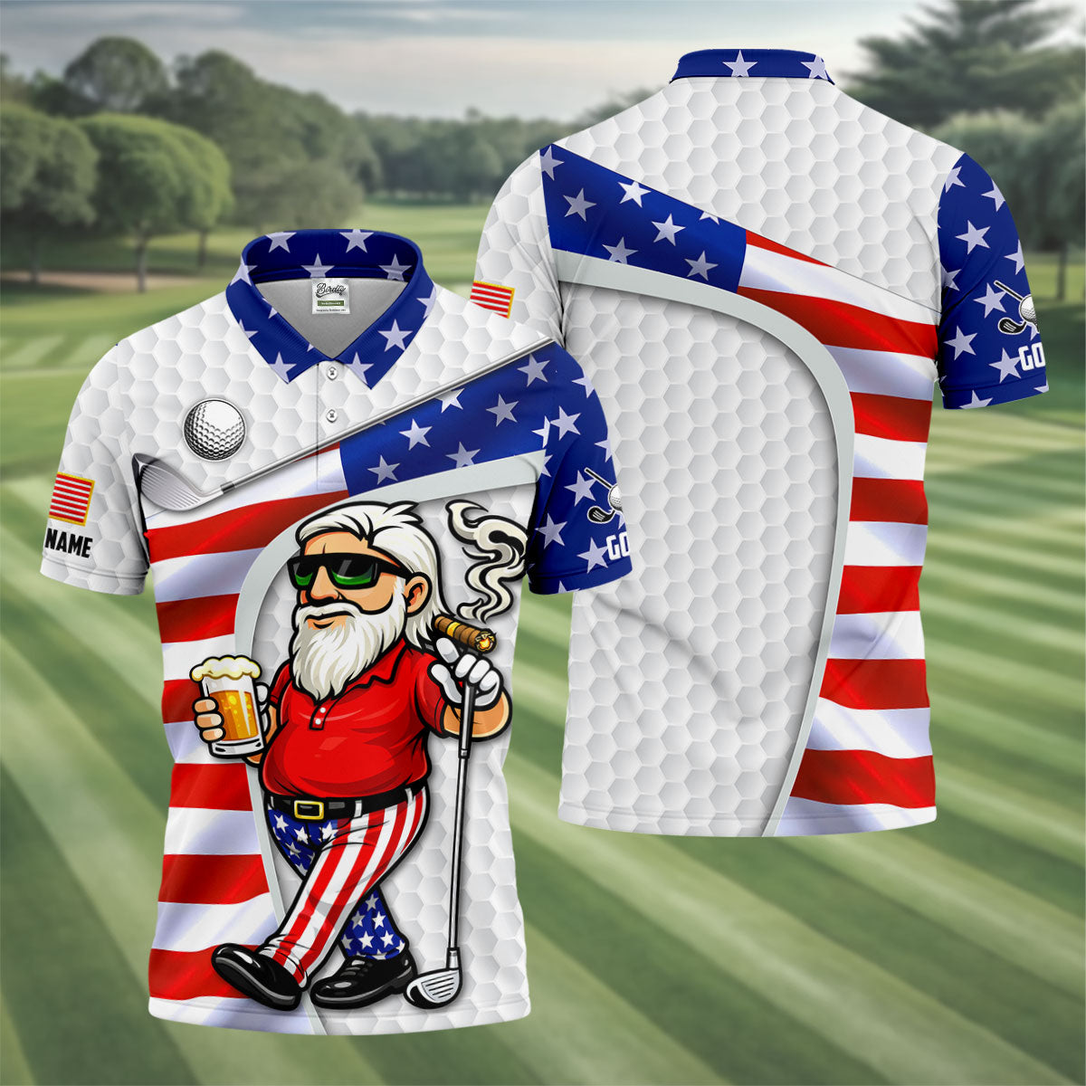 Golf And Beer Patriotic Man Golf Ball Pattern 4th Of July White Golf Shirt, 250th Anniversary Golf Shirts For Men