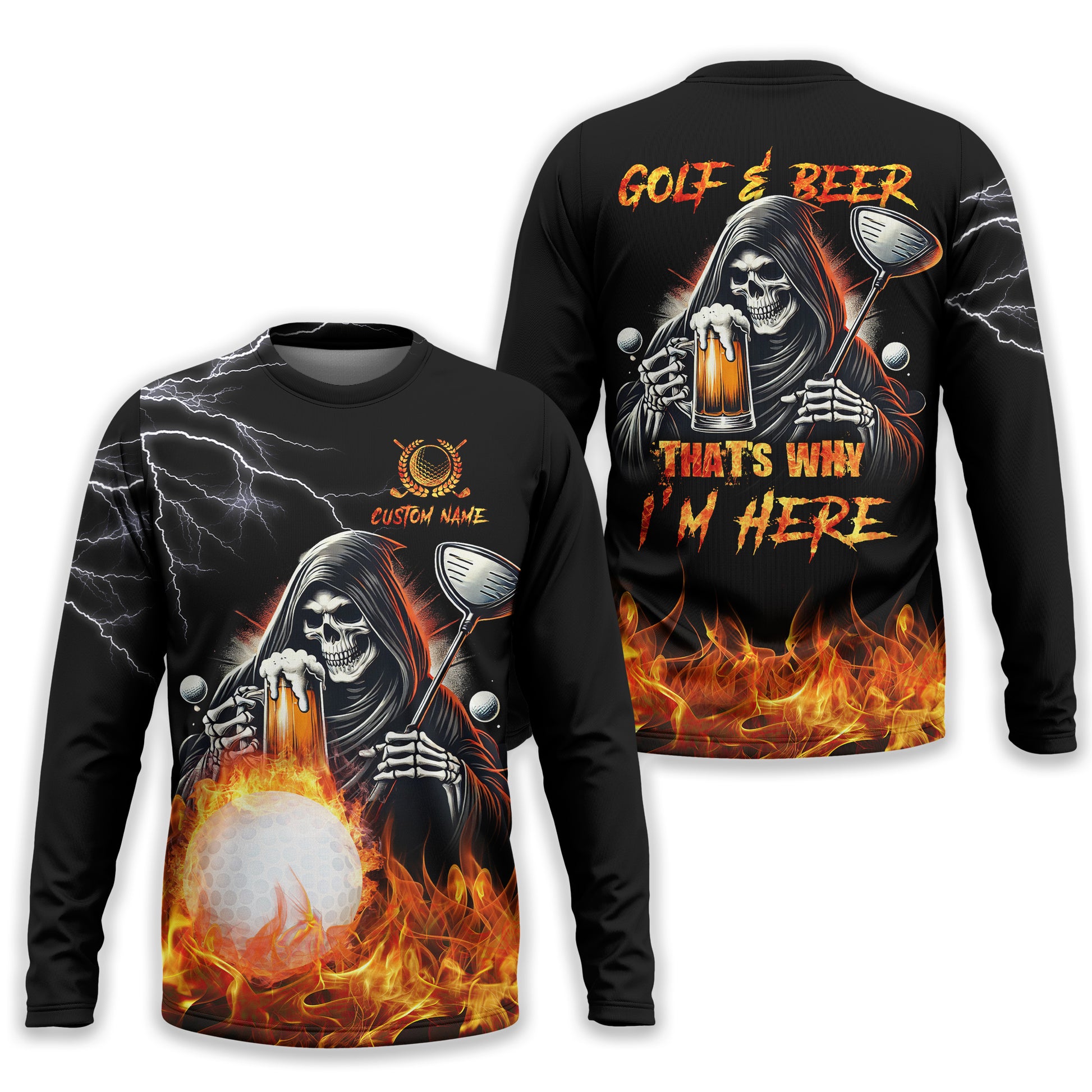 Golf And Beer That's Why I'm Here Custom Skull Golf Polo Shirt, Gift For Golfers, Golf Gift For Men