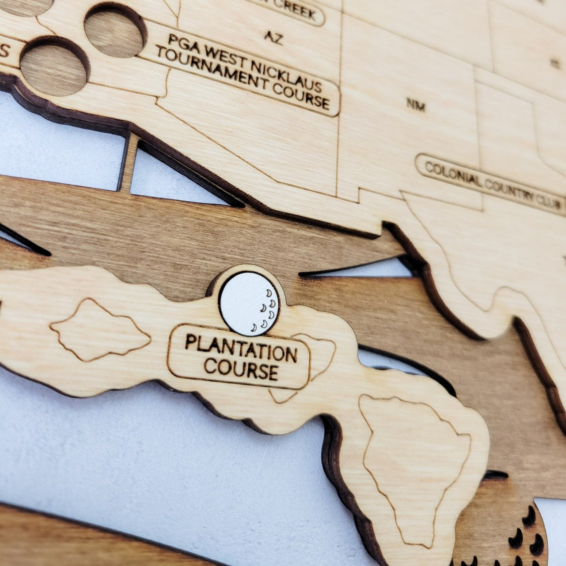 Introducing the Golf Course Wooden Travel Maps — a handcrafted tribute to your favorite U.S. golf course, built from real quality wood and colored to last longer than your short game consistency.
