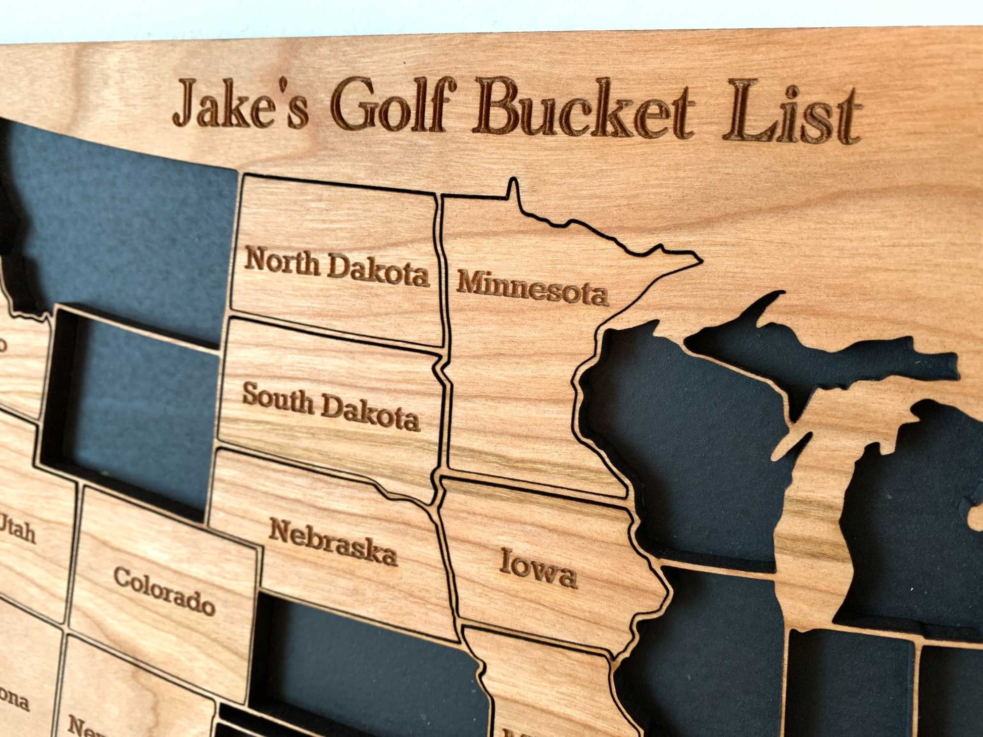 With our custom engraved badge, your wood map becomes a storyteller, weaving the tale of your golf journey across the America. From the first tee to that satisfying putt on the 18th green, you’ve earned the right to brag – now let your map do the talking!