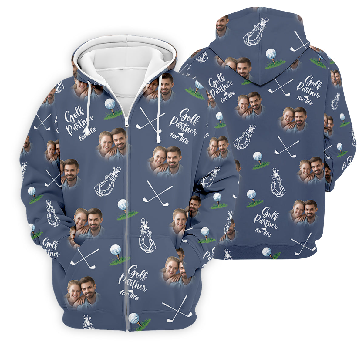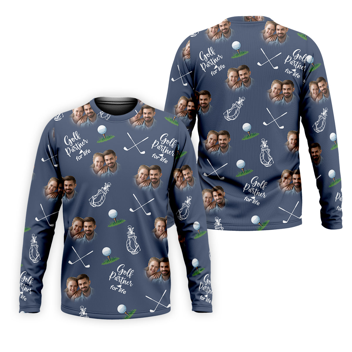 Golf Partner For Life Custom Photo Navy Golf Shirt, Valentines Golf Gift, Fun Golf Shirts For Men, Golf Gift For Men