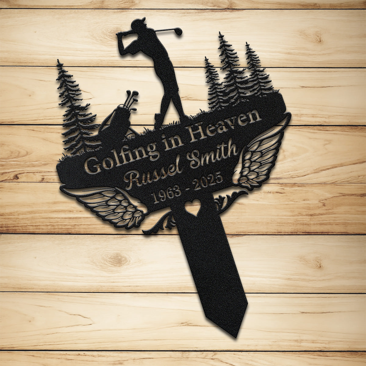 Golf Sign Golfing In Heaven, Custom Golfing Memorial Metal Stake, Golfer Grave Marker, Metal Stake